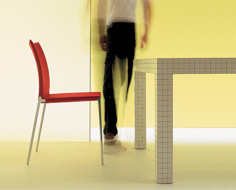 小さなキューブを積み重ねて作られたかのような3cm四方のグリッド模様は、機能的な性質から解放され、純粋な「ボリューム」として捉える概念から生まれました。