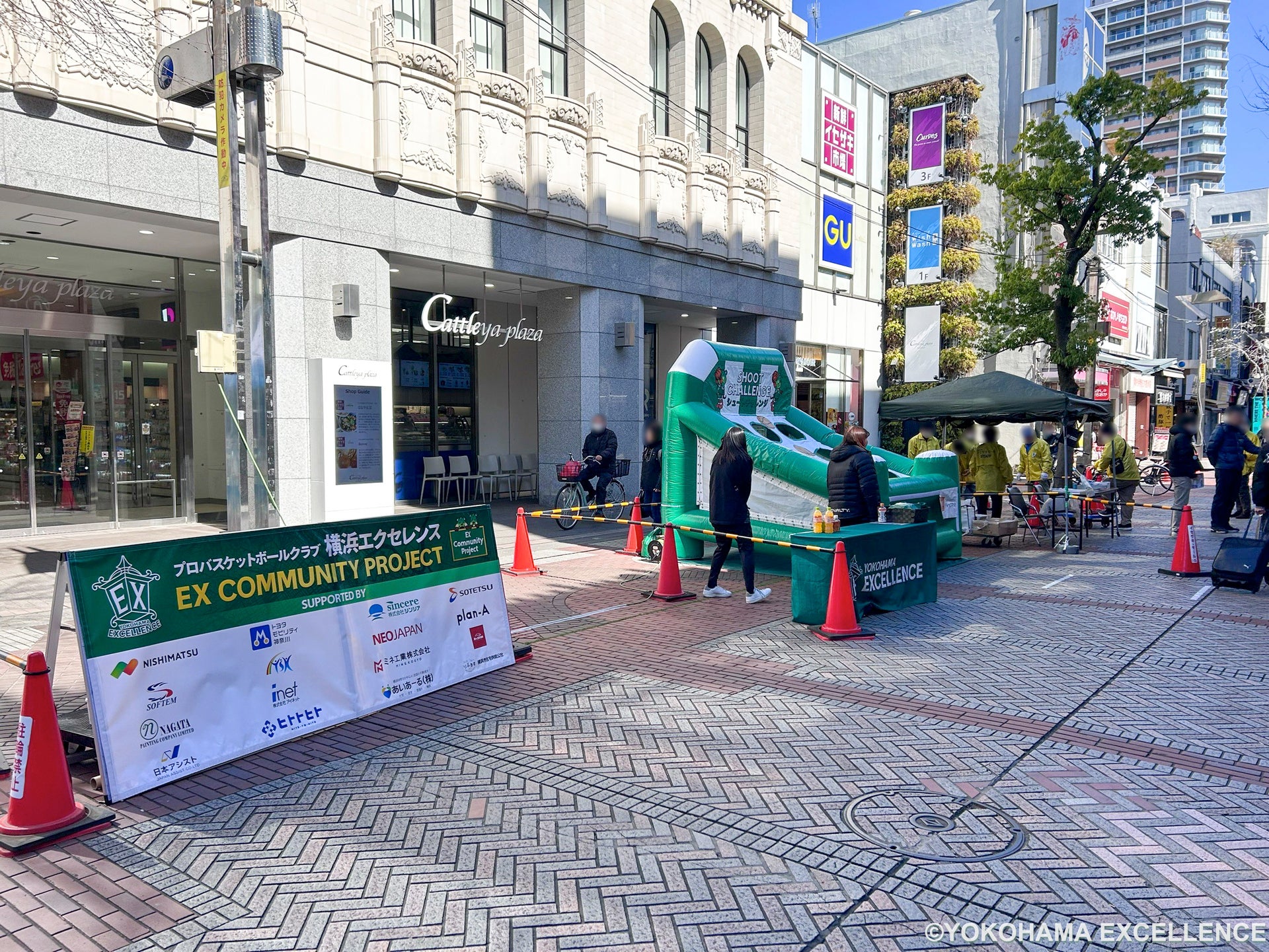 歩道の拡幅やベンチ・電源設備の整備などが行われリニューアルした「みなと大通り」にて開催された屋外で楽しめるイベントに、横浜エクセレンスも参加しました!