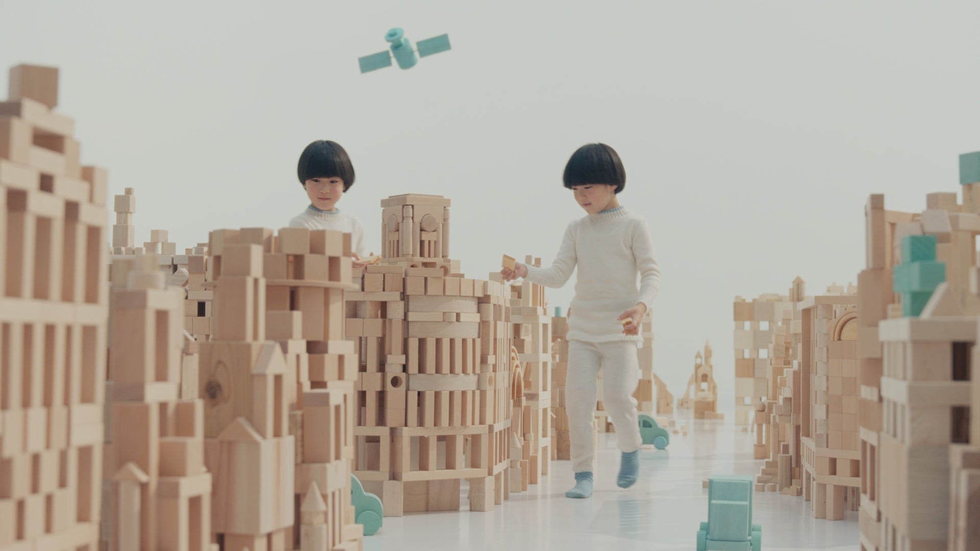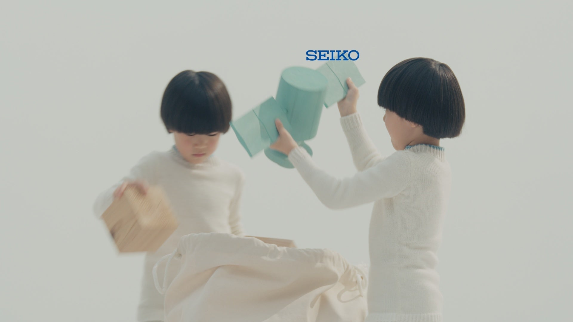 今回の企業CMでは、「時計のセイコー」と「ソリューションのセイコー」の2つの側面を、双子の子どもの姿を通して表現しています。双子が抱える大きな袋から出てきたのは、ソリューションの対象を示す水色の模型と、白木の積み木。セイコーの聖地であるSEIKO HOUSEを中心とした東京・銀座の街を彷彿とさせるような“積み木の街並み”の中に、セイコーのさまざまなソリューションが活躍している様子が映し出されます。そんなセイコーのソリューションが生み出すのは、人々の笑顔です。これからも“心を動かすソリューション”をセイコーは人々に、社会に届けていきます。
