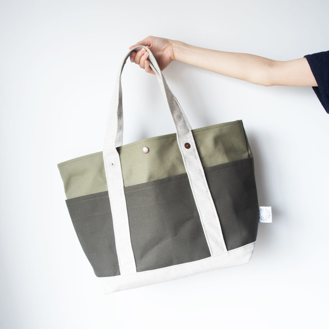 オリーブを思わせる落ち着いたカーキ色。柔らかなキャンバス地を使用した、日常使いしやすいアイテムです。