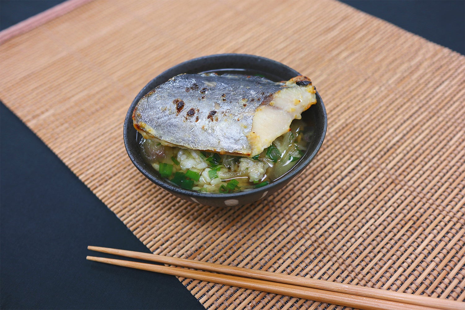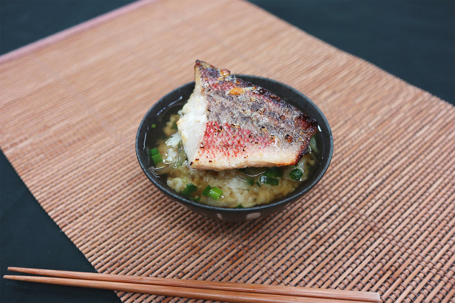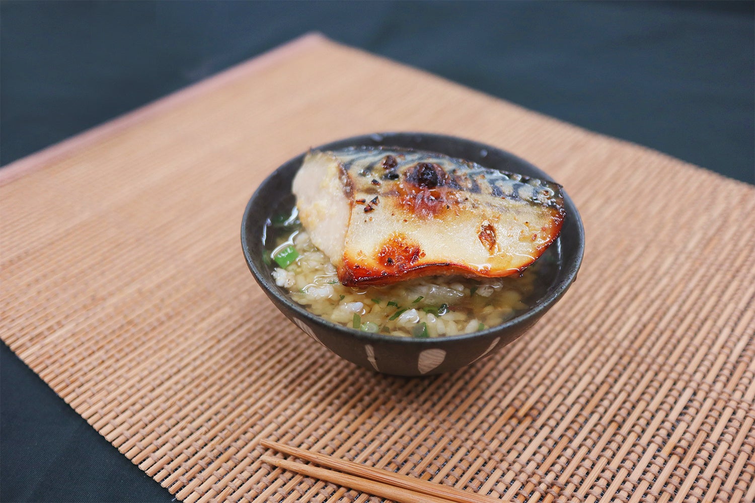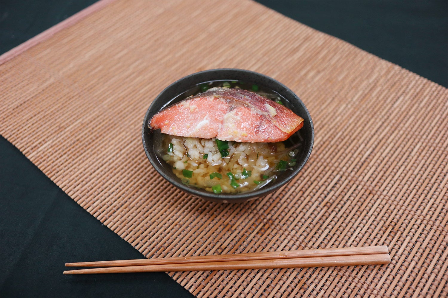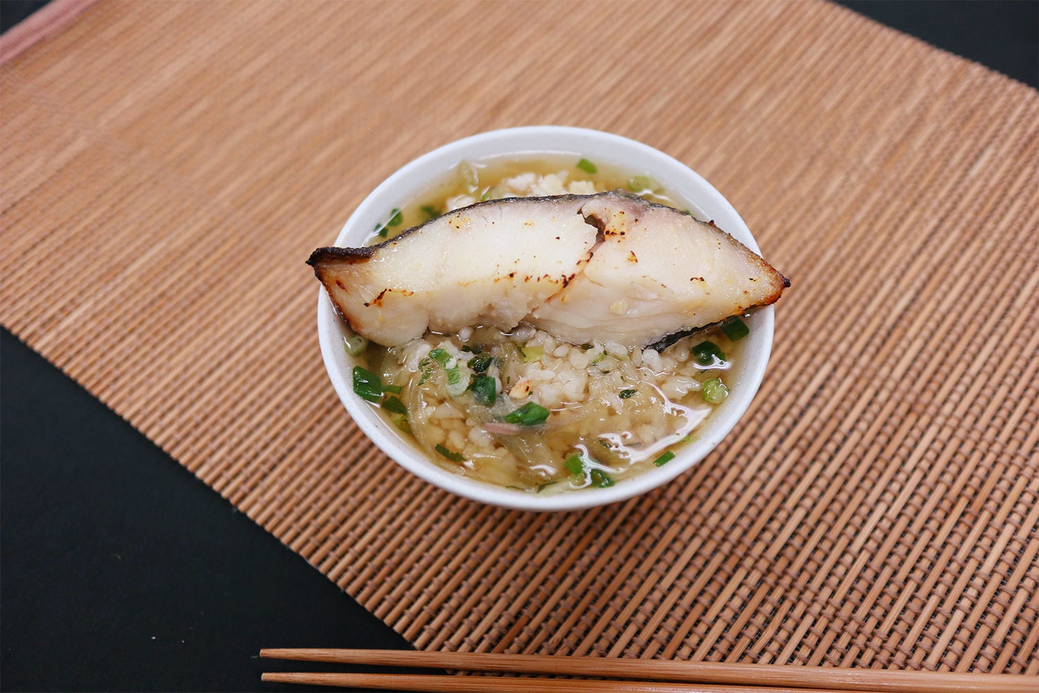 ①西京焼きと出汁を湯煎か電子レンジで温めてお茶漬けとして
