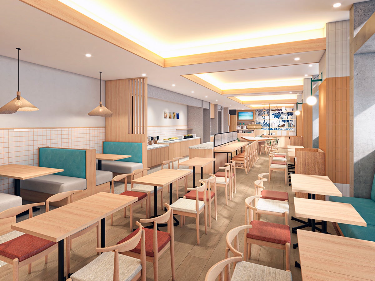 コンフォートホテル那覇県庁前ではこれまで主に朝食会場として使っていたラウンジスペースを、Comfort Library Cafeへ一新します。Comfort Library Cafeは、全国45カ所のコンフォートホテルに展開されている、宿泊者無料のオープンスペースです。Wi-Fiやコンセント、ブックディレクターは選書した100冊以上の本をそなえた、仕事や読書をしやすい落ち着いた空間です。ボックス席やカウンター席など、様々なタイプの席をご用意しており、チェックイン前やチェックアウト後も自由に利用することができます。