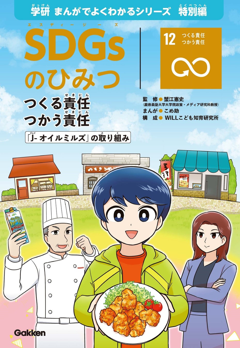株式会社J-オイルミルズ(本社:東京都中央区、代表取締役社長執行役員:佐藤 達也、以下当社)は、株式会社Gakken(本社:東京都品川区、代表取締役社長:五郎丸 徹、以下Gakken)の子ども向け学習まんが「学研 まんがでよくわかるシリーズ」の特別編、「SDGsのひみつ12 つくる責任 つかう責任」を同社と協同企画・制作し、4月10日に発行いたします。