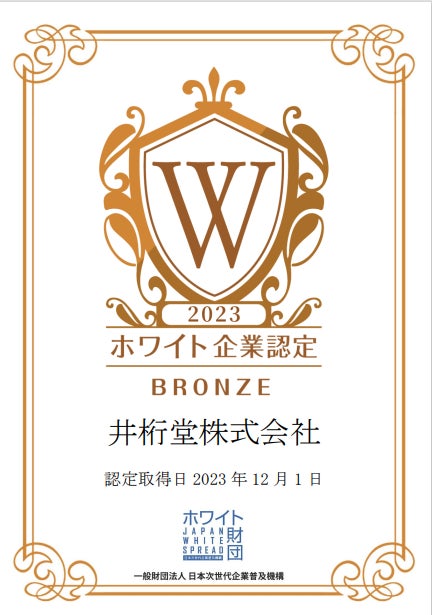井桁堂株式会社様を「ホワイト企業認定 ブロンズランク 」として認定いたしました!