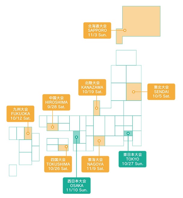 全国ブロック:東日本大会(東京)、西日本大会(大阪)