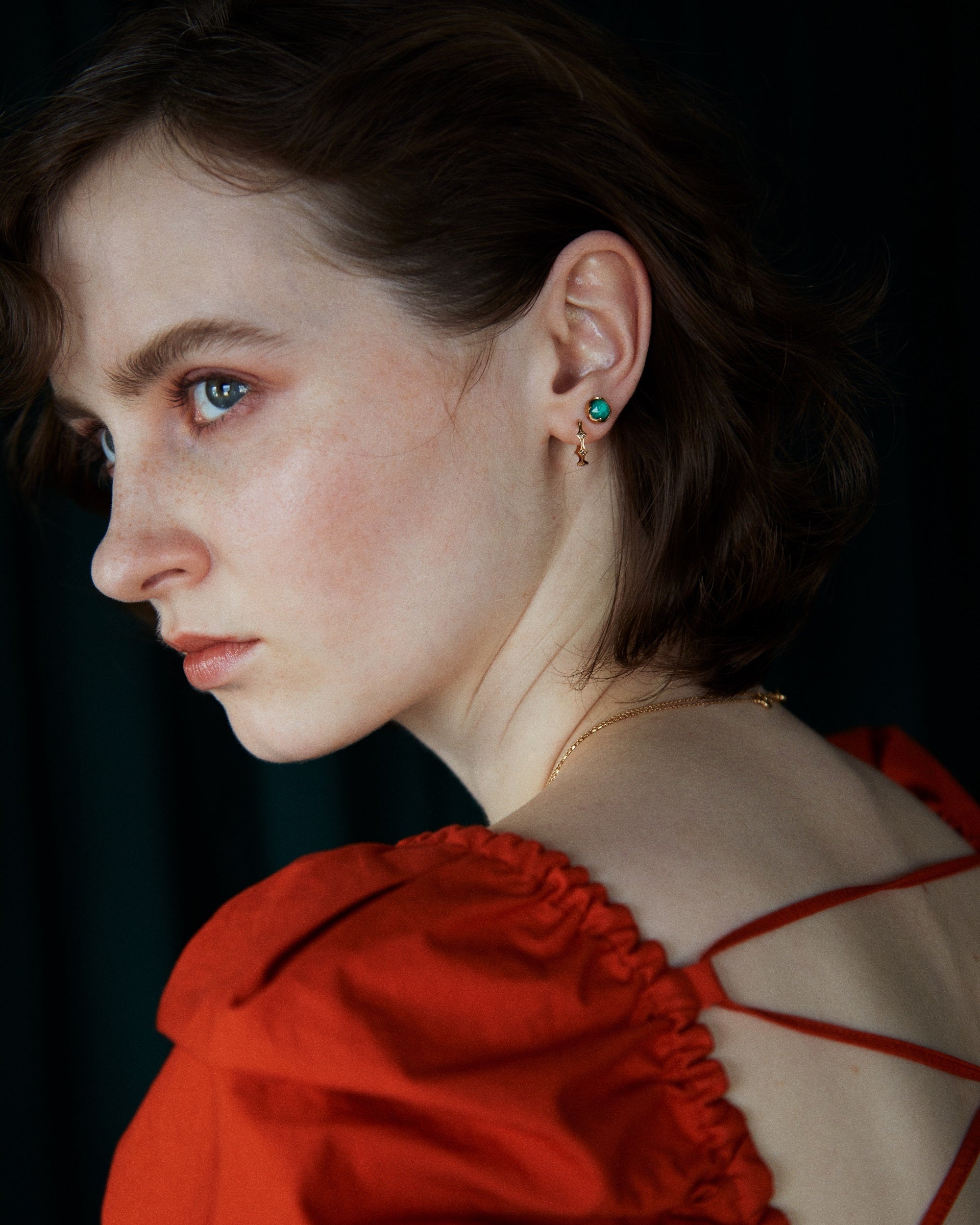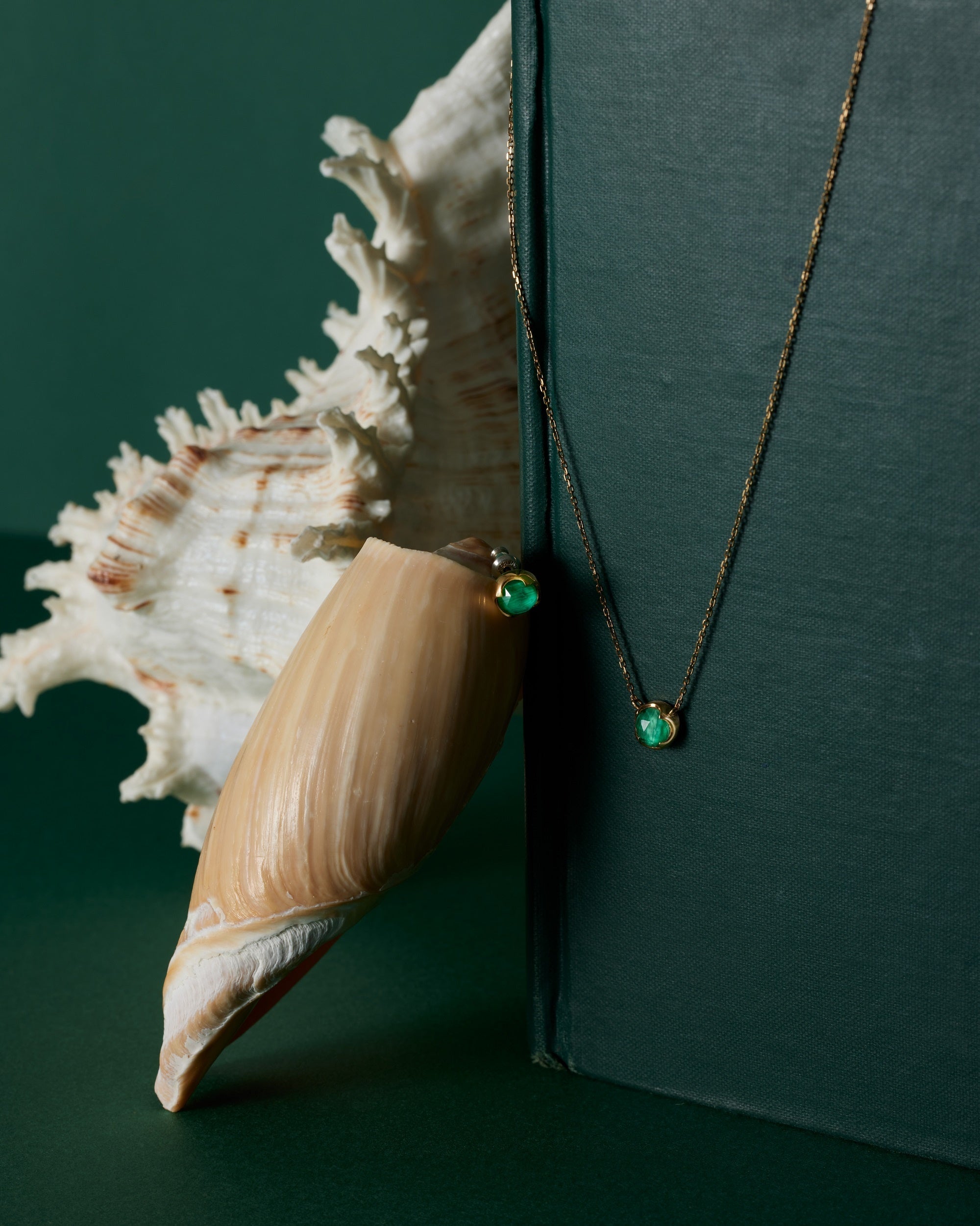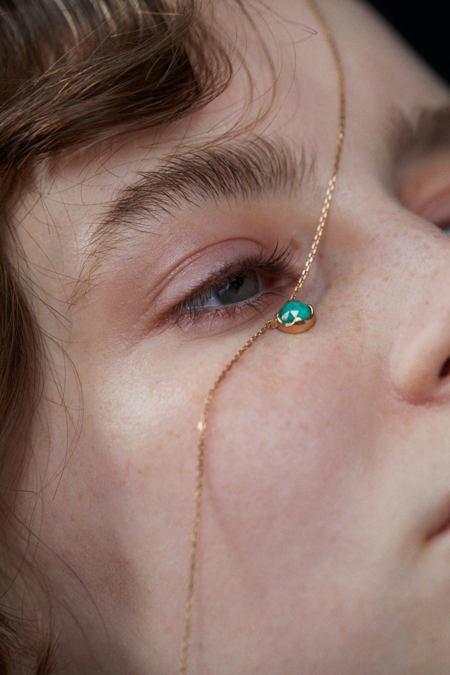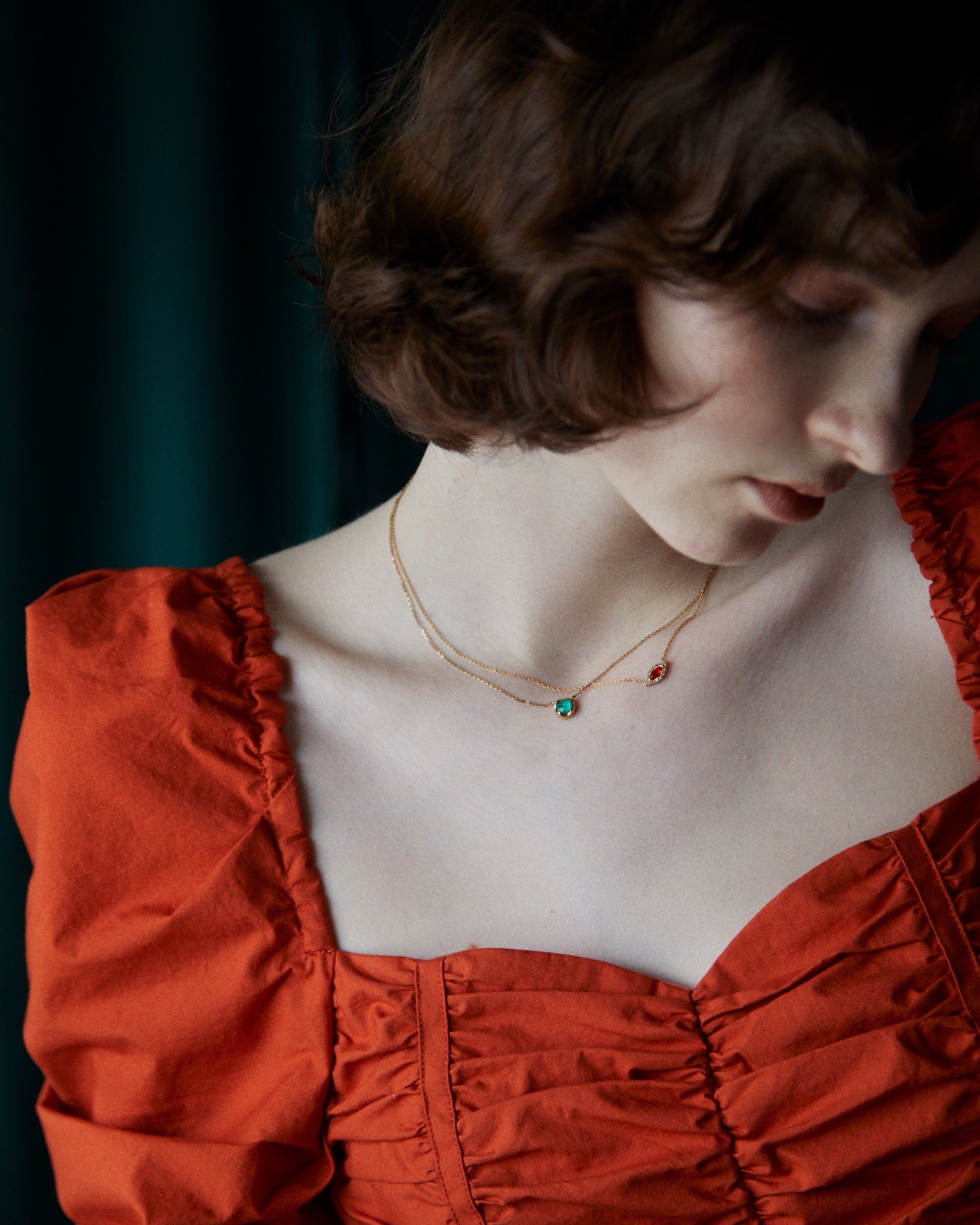 最初に発売される商品は「Orbe」シリーズから新作のマラカイトを使用したネックレスとピアス。
