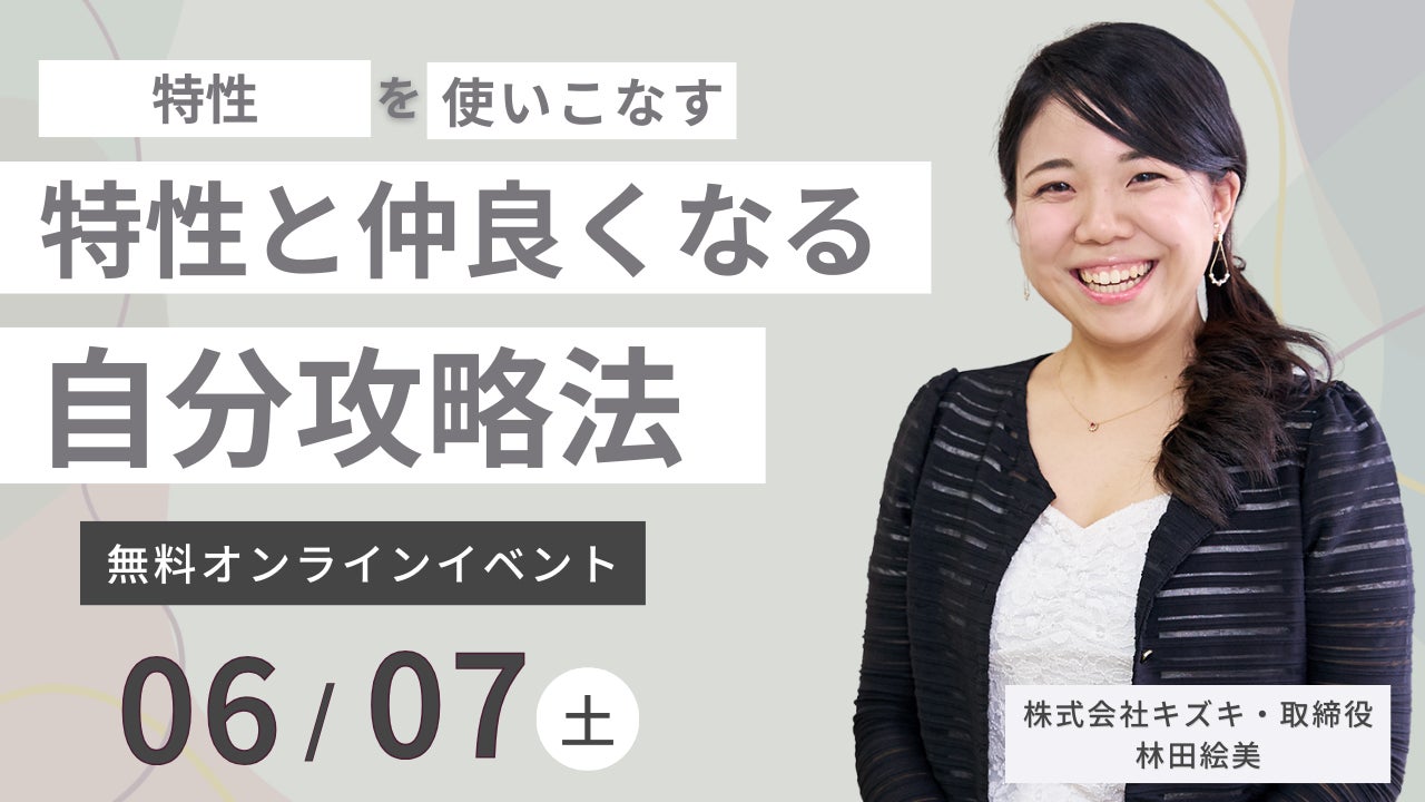 【6/7無料オンラインイベント】発達特性と仲良くなる日。〜特性を“使いこなす”という自分攻略法〜(参加者限定特典も!)【株式会社キズキ】
