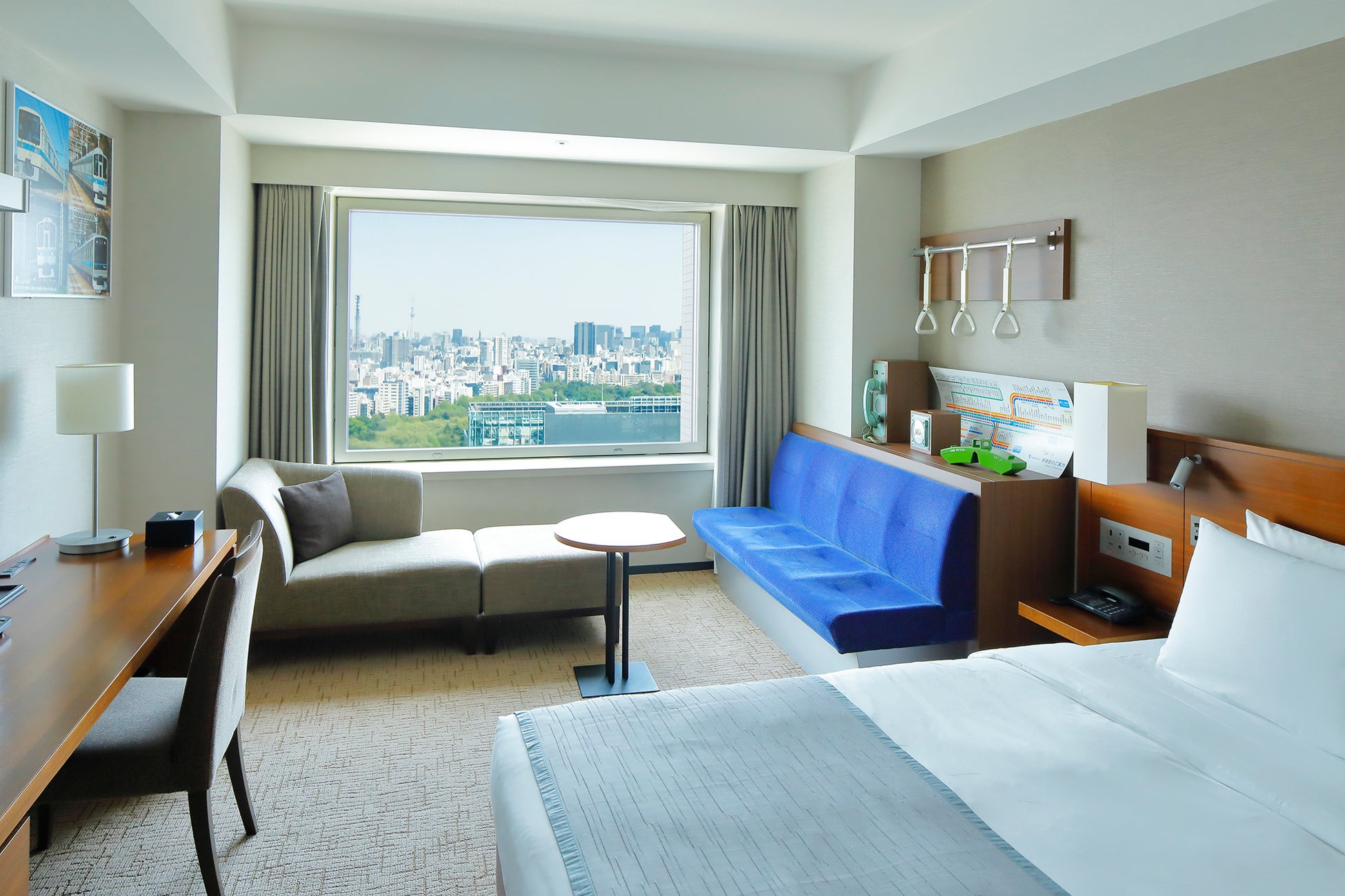 新宿駅を発着する小田急線とJR各線、両方を眼下に望むパノラミックキングルームで、小田急線の本格運転シミュレーター(小田急かんたんシミュレーター)で運転体験をしながら、始発から終電まで楽しいひとときをお過ごしください。