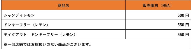 ※ドンキーフリー(レモン)はテイクアウトできます。デリバリーはできません。