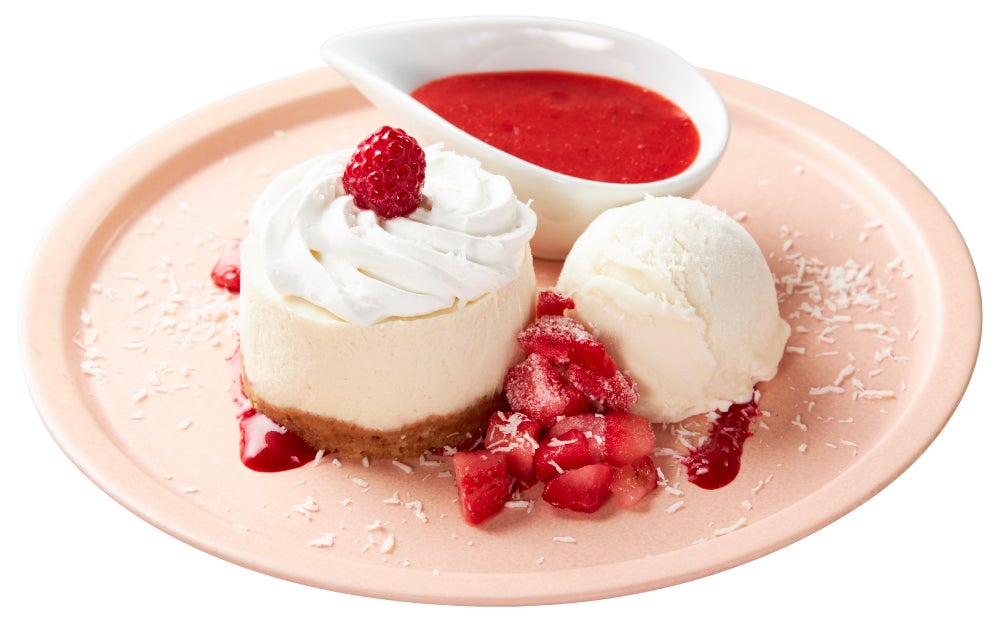 コクのある濃密なレアチーズムースとサクほろ食感のクッキーボトムが2層仕立てになった、植物由来の濃密レアチーズケーキから冬季限定メニュー「濃密レアチーズケーキのスイーツプレート ストロベリーソース添え」が登場です。
