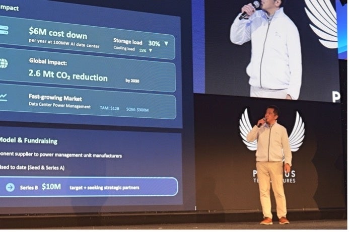 見事、世界チャンピオンに輝いたのは、米国・イーストベイ予選代表Coreshell(本社:米国カリフォルニア州、CEO:Jonathan Tan、https://www.coreshell.com)です。同社は、バッテリーの性能を向上させるナノレイヤー薄膜コーティング技術によって、従来の10倍の容量を貯めることができる低コストかつ高性能なシリコン負極を開発しています。約3,000名の観客に見守られながらピッチを披露し、同社の優れた技術とエネルギーや環境問題の解決につながるビジネスが、イノベーション業界トップの審査員の方々に高く評価されました。