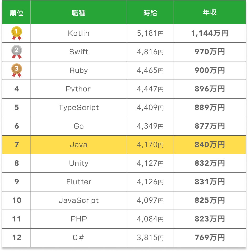 平均年収840万円(言語年収ランキング7位)