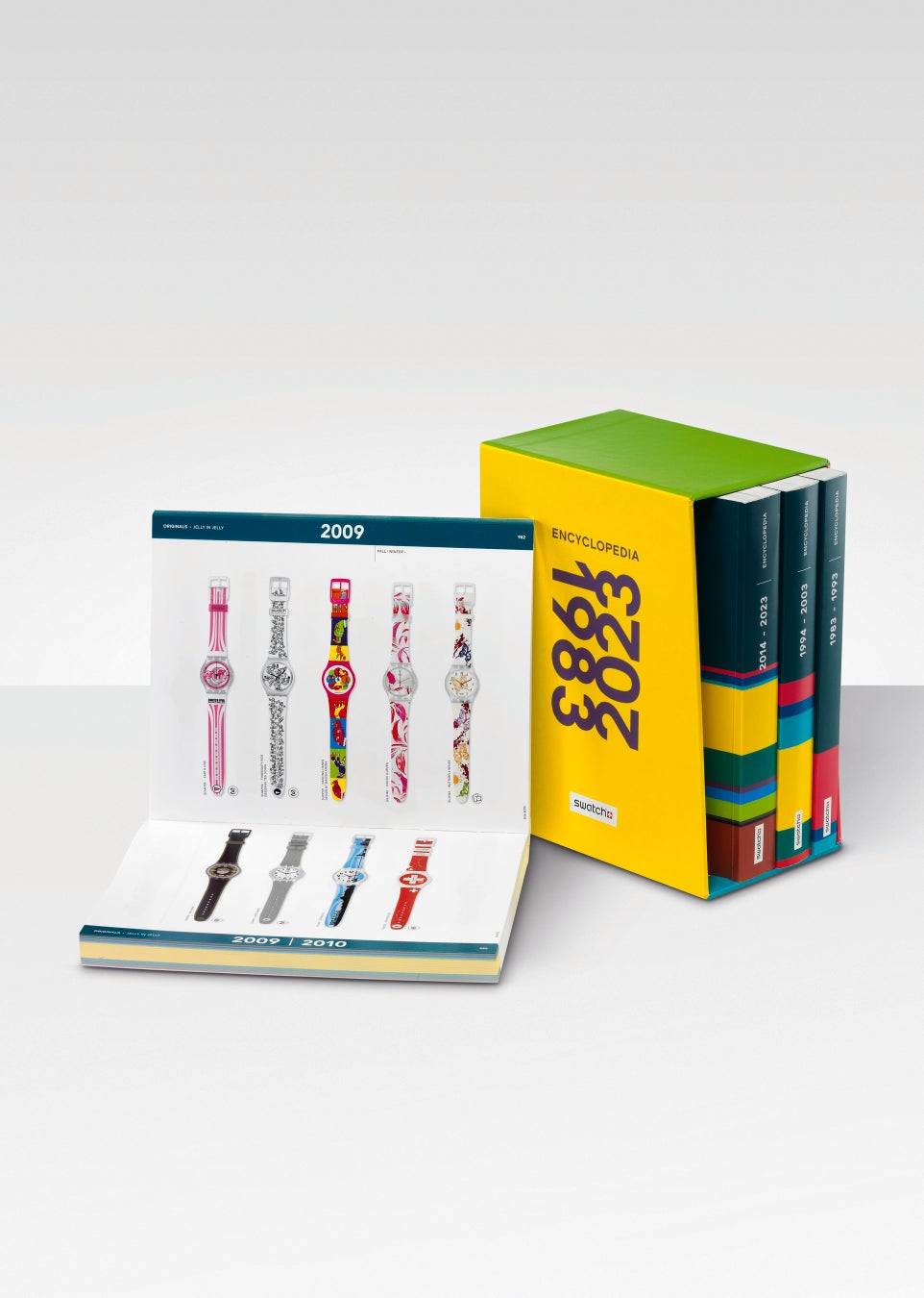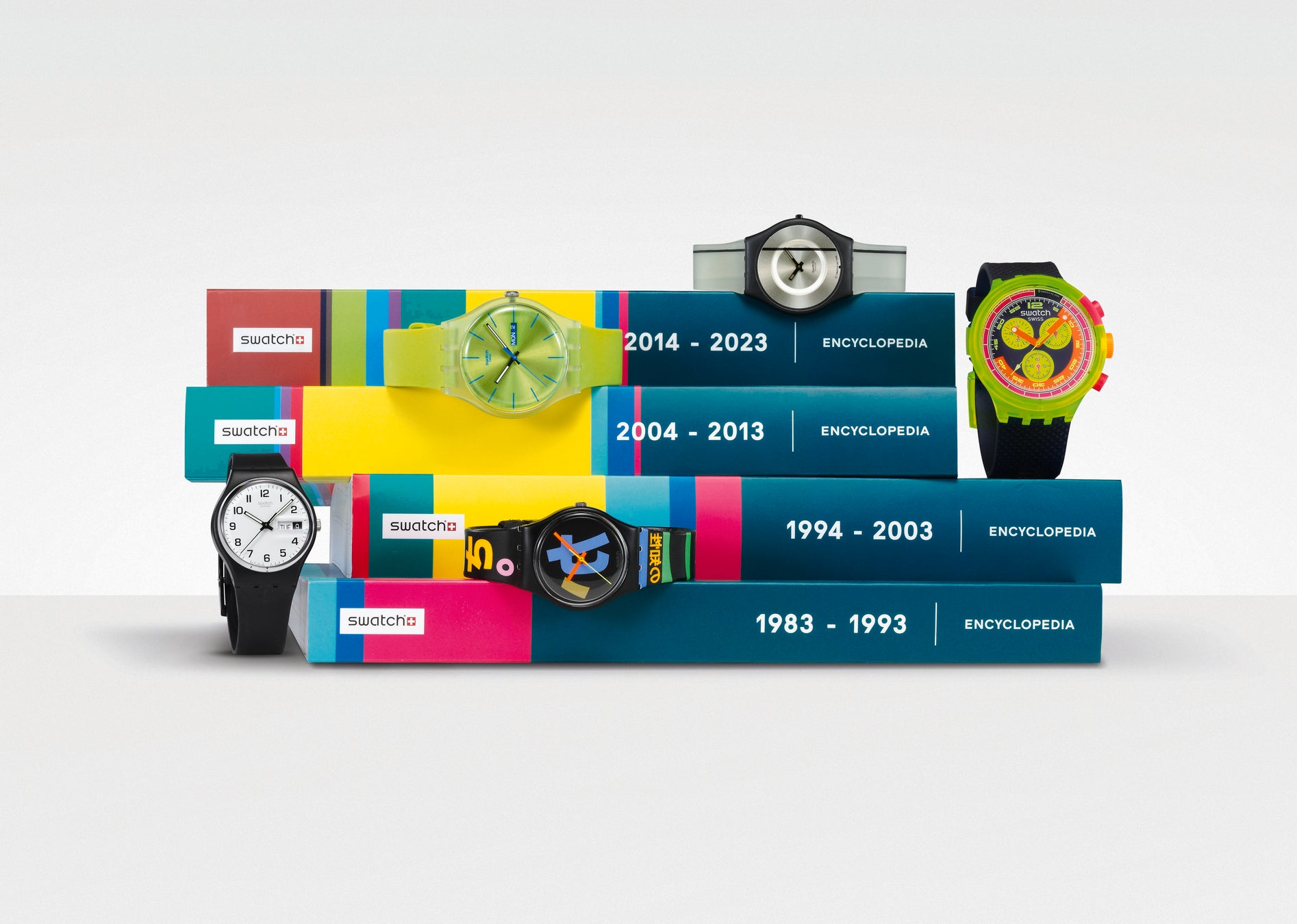 40年にわたるSwatchのイノベーション、人生の喜び、そしてポジティブな挑戦を記念するユニークな全4巻のボックスセットSwatch Encyclopediaが発売されます。美しく編集されたページに8,419本のSwatchウォッチが紹介されたSwatch Encyclopediaは、Swatchを愛し、デザイン、アート、そして力強い自己表現を愛するすべての人にとって必携の書です。各巻では、1983年のブランド創立から2023年の創業40周年まで、Swatchの歴史の10年分を網羅しています。世界中で愛されている「セカンド・ウォッチ」の誕生、初のSwatch Art Specialから、SISTEM51やユニークなBIOCERAMIC WHAT IF?デザインのような最新のイノベーション、そしてOMEGA X SwatchやBlancpain X Swatchといった先進的なコラボレーションまで、各巻は時を超えてSwatchのエッセンスを凝縮しています。鮮やかな色彩のブックケースに収められたSwatch Encyclopediaは、どんな空間にもスタイリッシュに彩りを添え、人目を引く魅力的な装丁で部屋の雰囲気を明るくします。真のコレクターズアイテムであり、どんな機会でも最適なギフトになります。Swatchのカラフルで活気に満ちた世界を探求し、時間を巡る旅へと、すべての人を誘います。