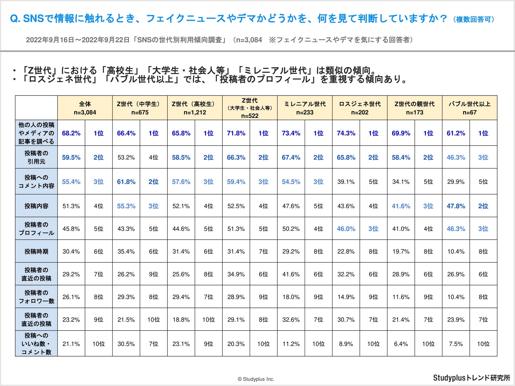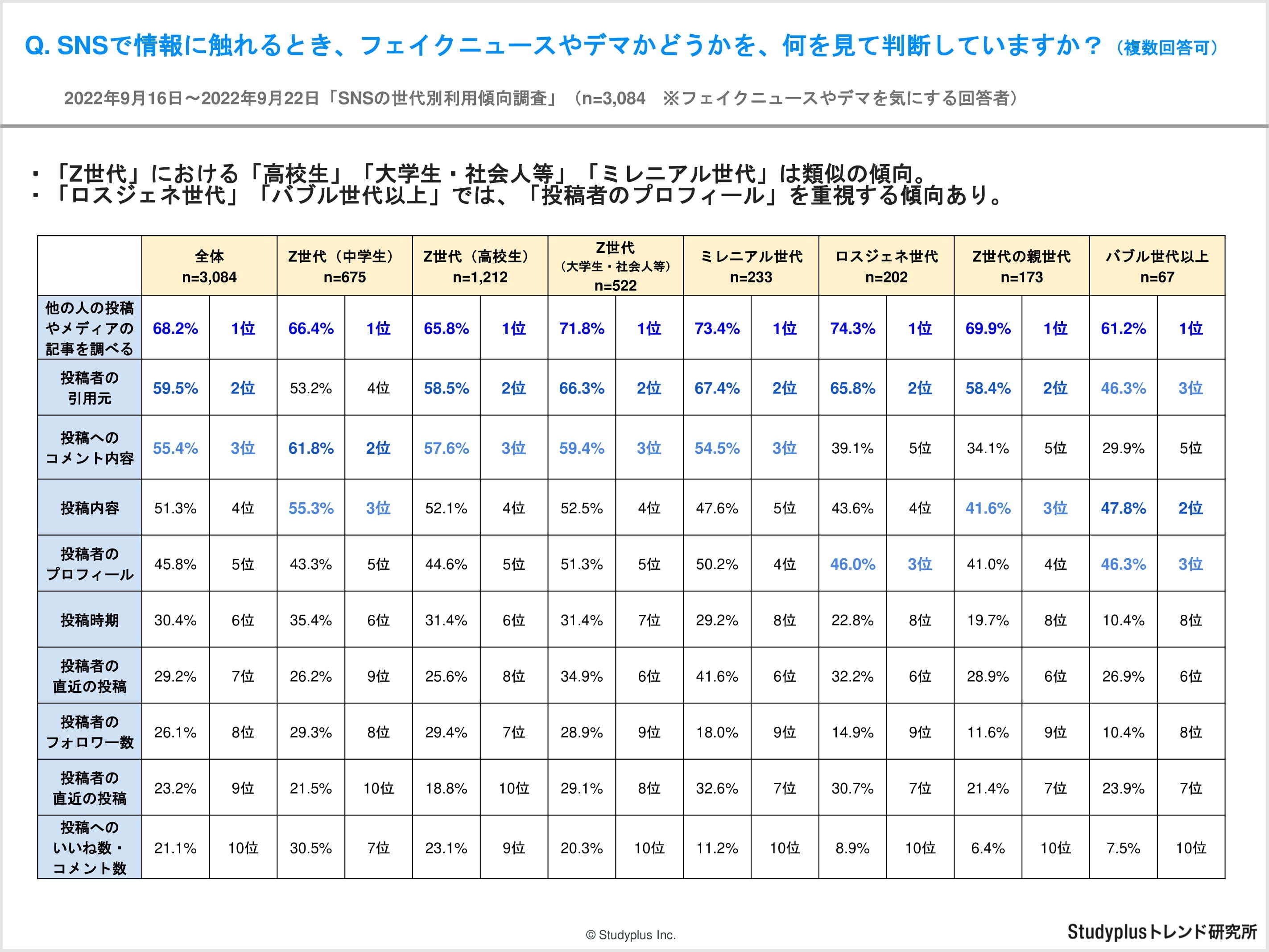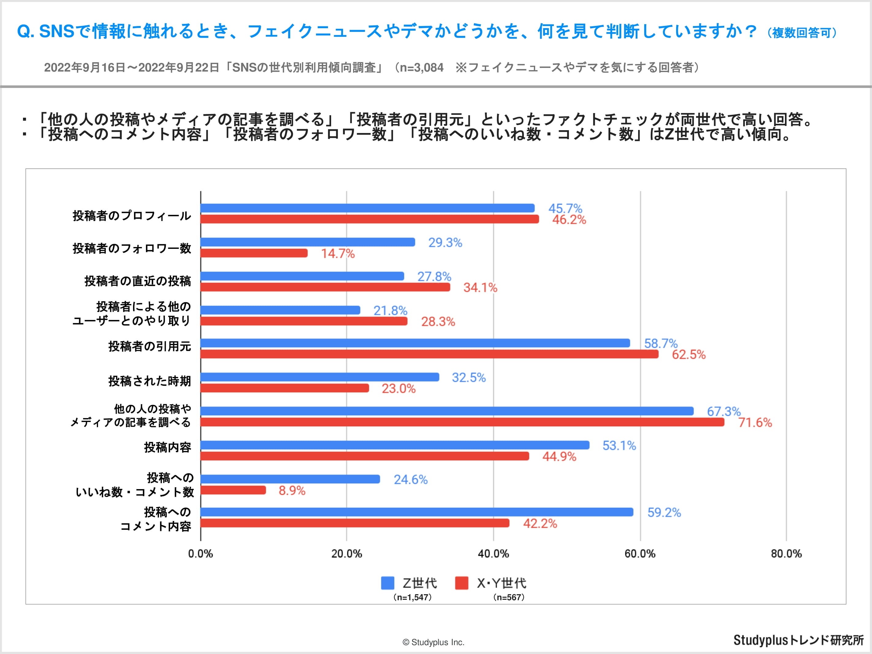 中高生含む「Z世代」の約9割がSNSでフェイクニュース・デマを気にすると回答。ファクトチェックする割合が高く、“フォロワー数”“いいね数”も判断に影響