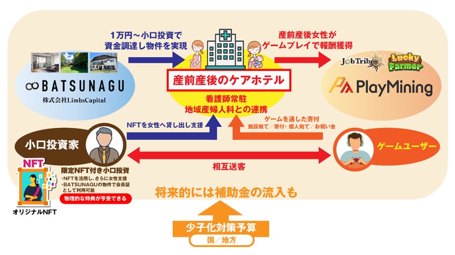 弊社の不動産クラウドファンディングのサービスである「BATSUNAGU」では不動産を通じて地方創生や学生支援、少子化対策など 様々な社会貢献を目指しプロジェクトを立ち上げておりますが、今回、DEAのNFTゲームにおけるPlay to Earnそしてそのプラットフォームである「PlayMining」との結び付きが非常に面白く社会的意義のある効用を生み出すことができると考えております。その新しいビジョンに参画、触れていただけらたらと思っております。