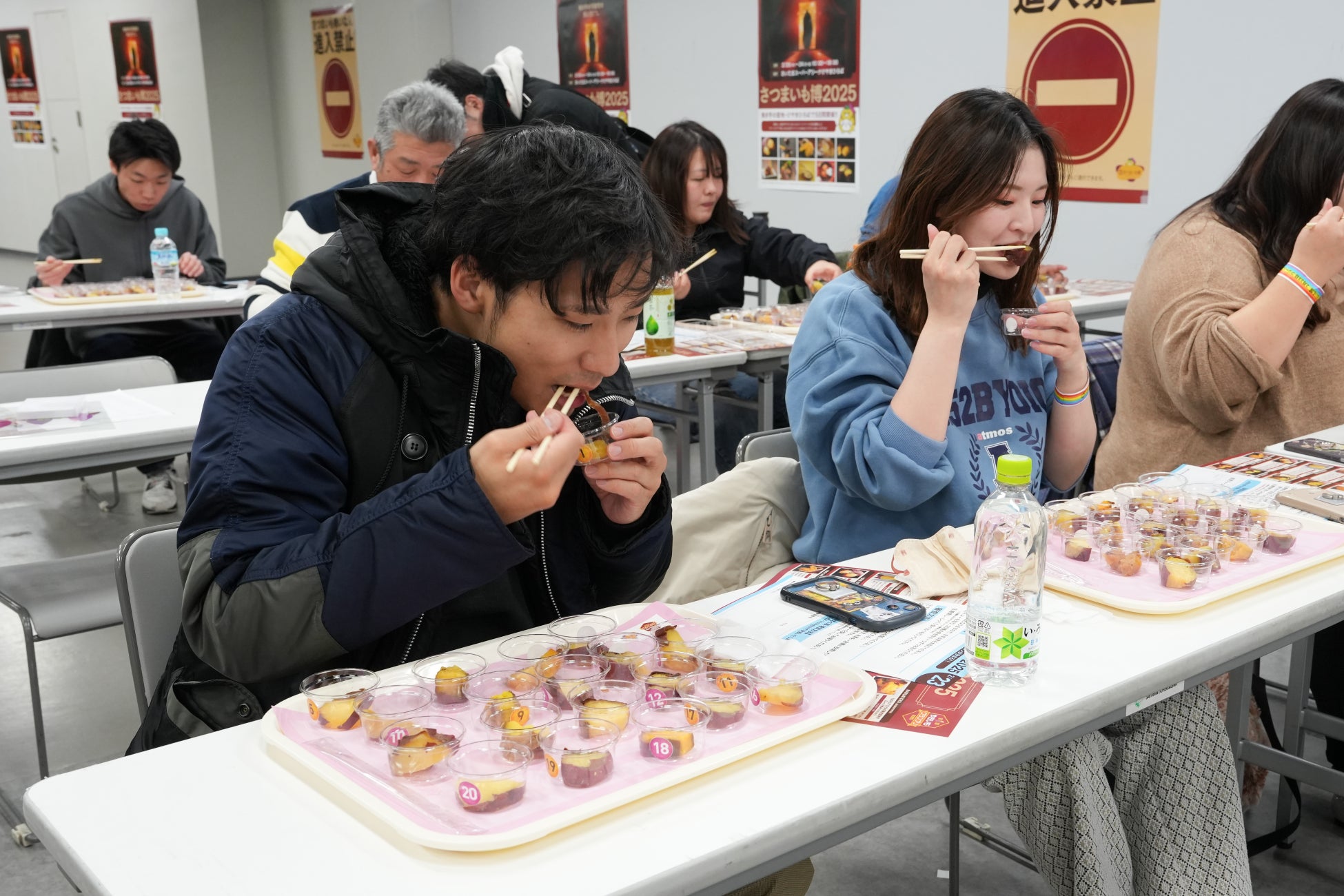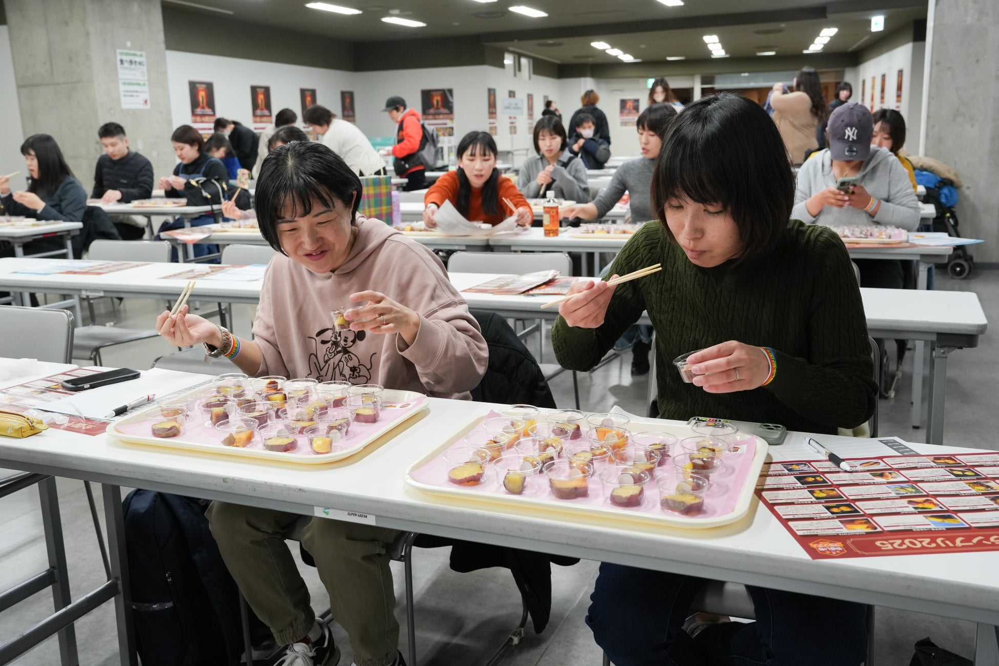 焼き芋ファンの皆様から好評をいただいている「食べ比べ審査」を今回も実施いたします。一般審査とは別に、それぞれが30票の投票権を持ち、全焼き芋を食味したうえで好きな店舗に好きな配点で投票を行います。店名、品種名を隠した状態の焼き芋と向き合い、味わいながら審査する様子は、楽しみを超えて真剣そのもの。そのみなさんの熱量が、今回もグランプリの結果に大きく影響します!