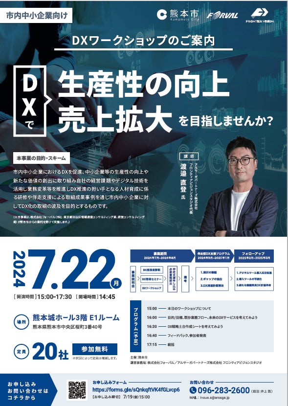 熊本市(市長:大西 一史)は、昨年度に引き続きデジタル技術を活用した業務変革等に取り組む市内の中小企業等を対象に、専門家による集中的な伴走支援等を行う「熊本市中小企業等DXアクセラレーション事業」を実施します。