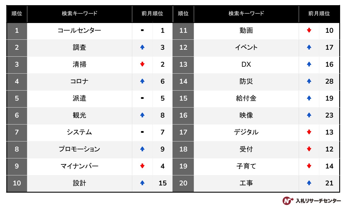 入札案件 検索キーワードは、前月同様「コールセンター」が第1位に
