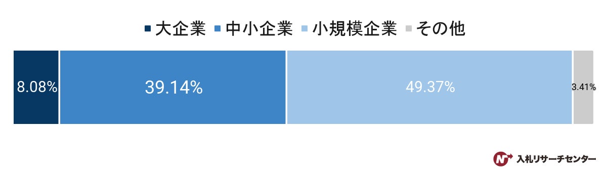 全省庁統一資格を新たに取得した新規企業のうち、中小企業は39.14%、小規模企業は49.37%となりました。