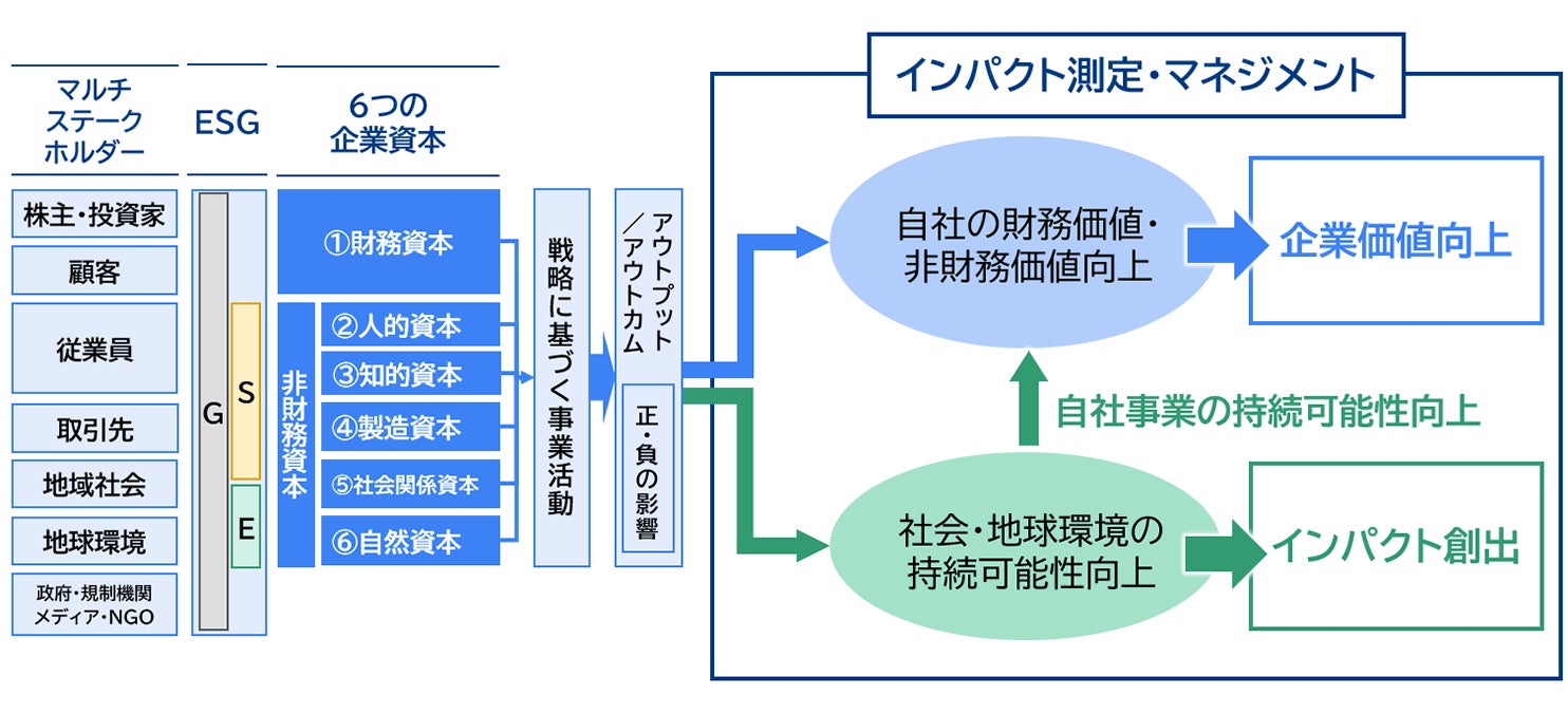 提言にあたり、(1)社会・地球の持続可能性を高める非財務資本投資が企業価値に与える効果、(2)企業活動が社会・環境に与える影響(インパクト)の測定および経営に活かす方策、の2つを明らかにしました。