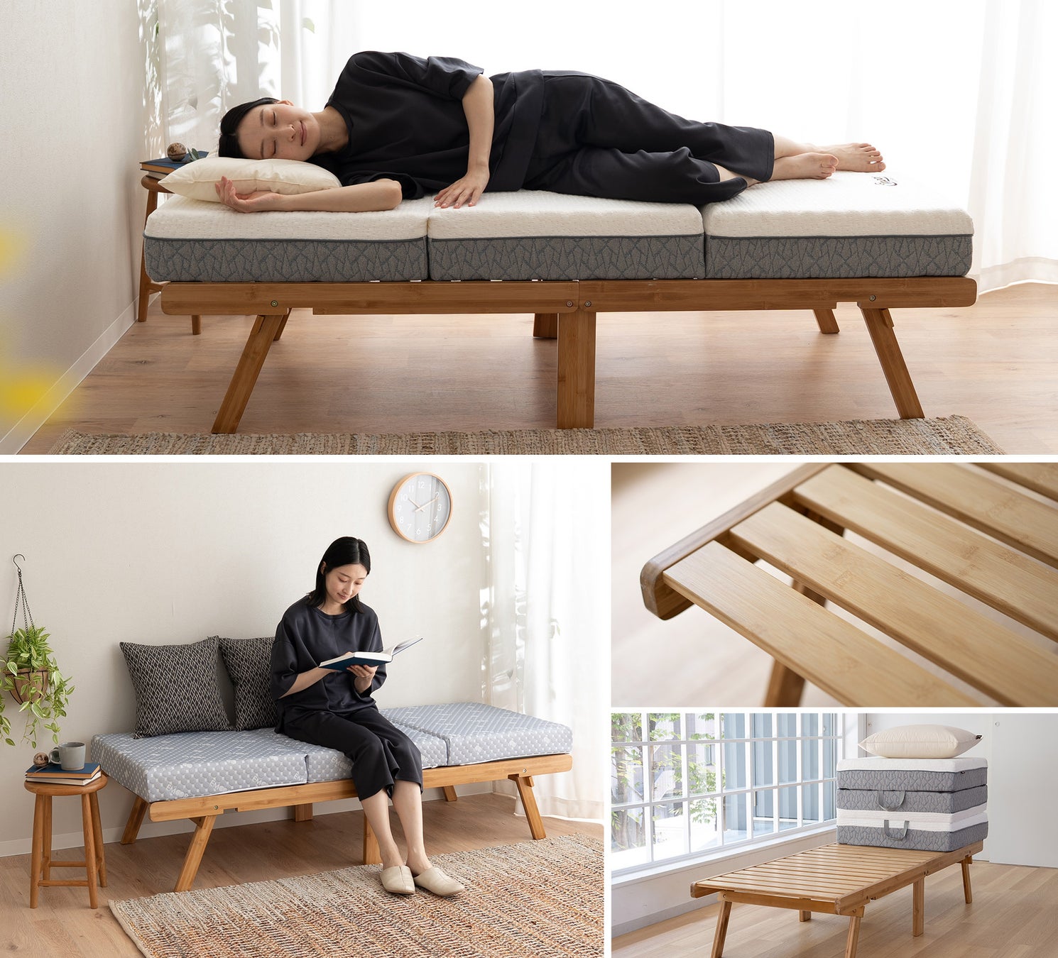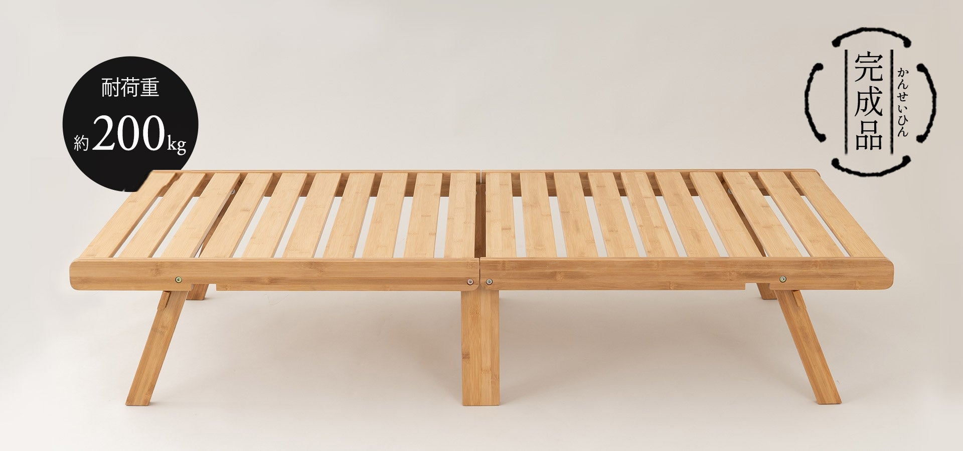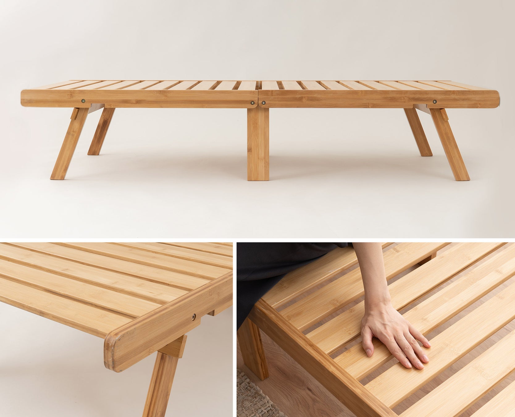 寝心地・座り心地を研究する健康家具ブランドEMOOR(エムール)が開発。コンパクトな和モダンデザインと天然竹の温もりを融合させた、天然竹の折りたたみすのこベッドです。
