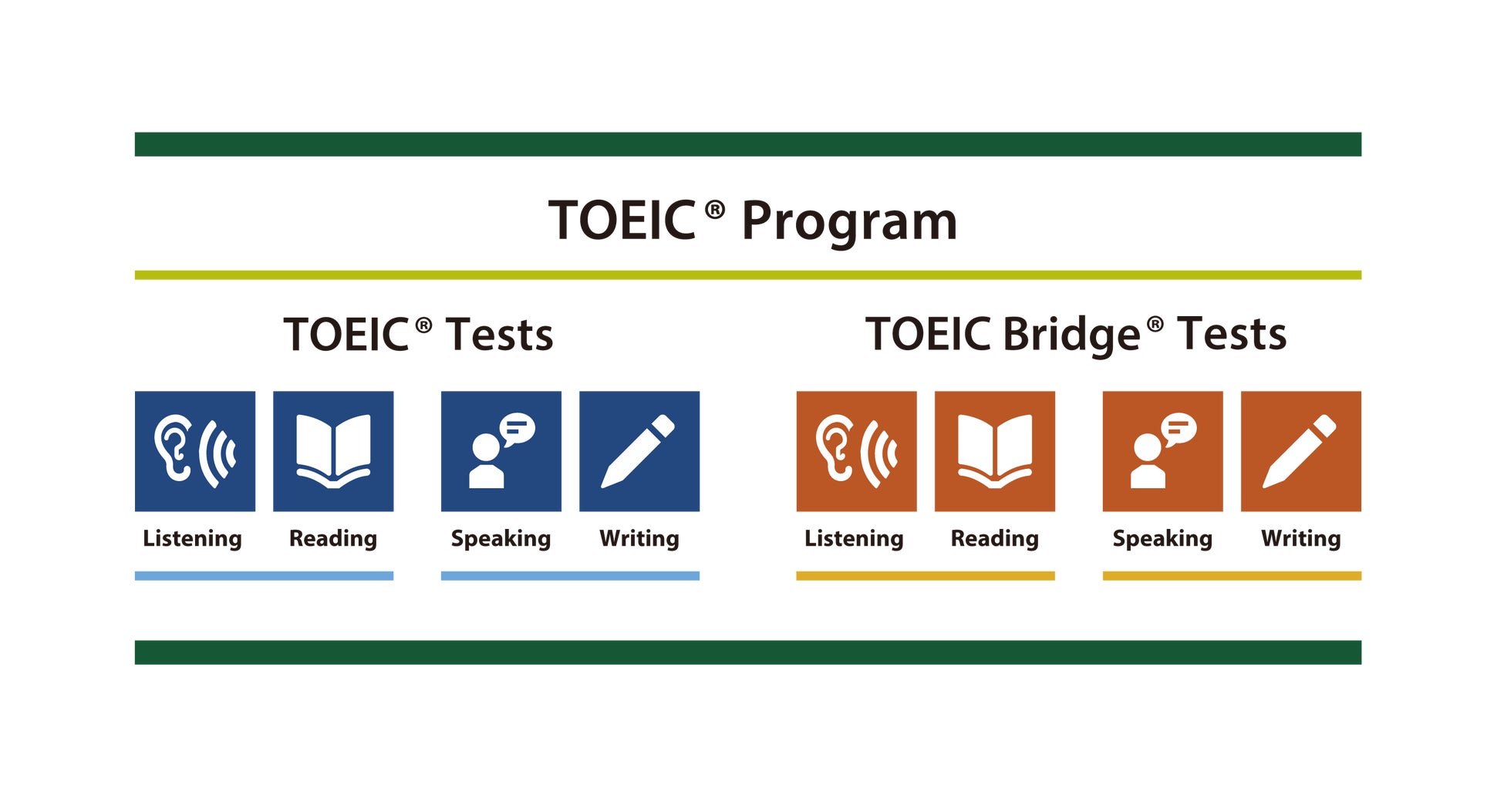 TOEIC® Listening & Reading Test、TOEIC® Speaking & Writing Tests、TOEIC Bridge® Listening & Reading Tests、TOEIC Bridge® Speaking & Writing Testsの総称。4つのテストを合わせたTOEIC® Programは世界160カ国、約14,000団体で実施されている。
