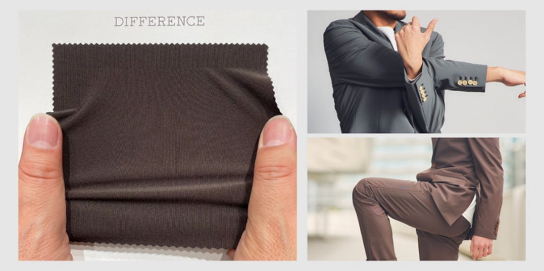 ビジネスウェアのカジュアル化と共に、「きちんとした着こなしを保ちつつ、軽くて動きやすく、快適なスーツ」というご要望が年々増加しておりました。そこで「DIFFERENCE(ディファレンス)」では、クラシックなテーラードファッションを大切にしながらも、軽やかに動けるこれまでにないストレッチ性と快適性を兼ね備えた生地の開発を始めました。