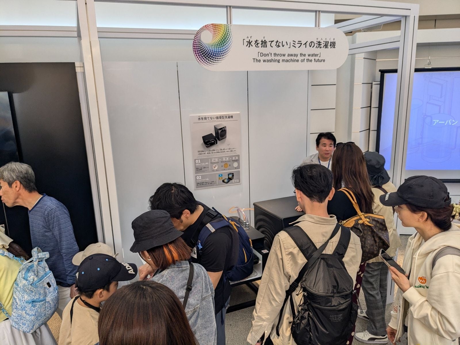 wash-plusは、2025年4月21日(月) から4月28日(月)の1週間で展示される「Resona Mirai Color 〜夏〜ミライのメトロポリス」のカテゴリー内に出展。給排水設備がなくても使える”水を捨てない”循環型洗濯機をモックにて展示、開発中の技術について紹介しました。