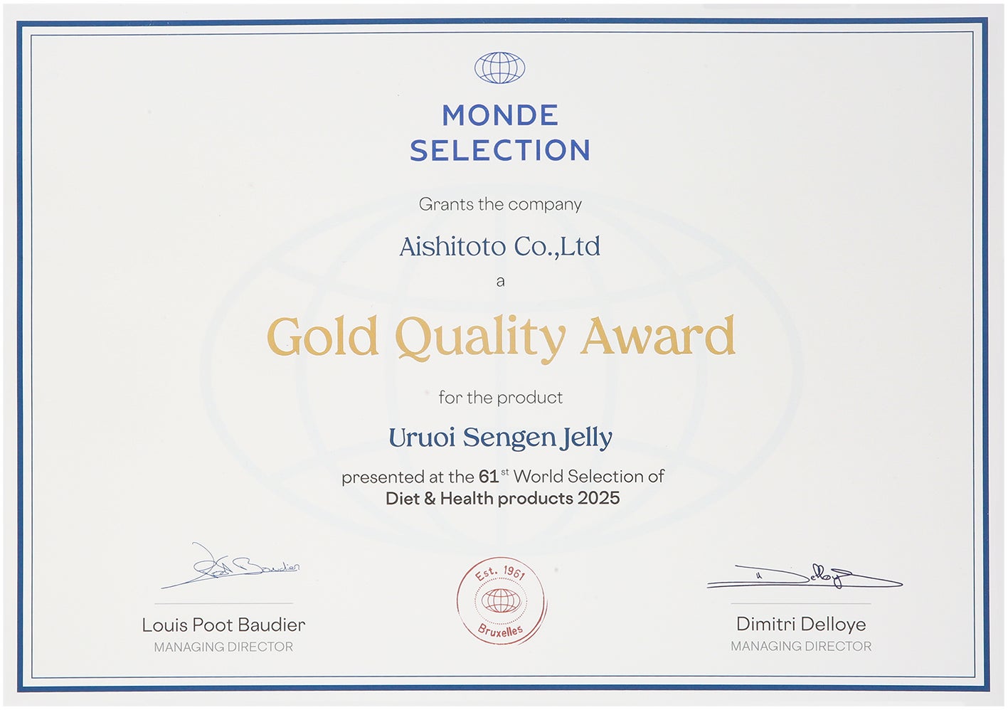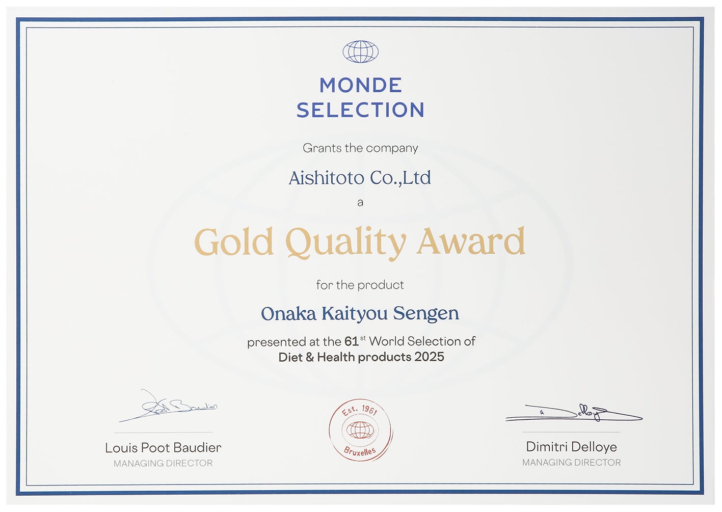 株式会社愛しとーとは、お客様の美と健康をサポートする高品質な商品づくりを追求してまいりました。その努力が実を結び、モンドセレクションにおいて以下の商品が 輝かしい成績を収めました。