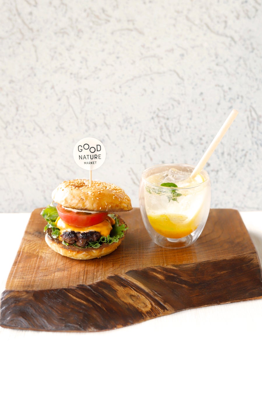 “発酵”をテーマに期間限定で販売している「醸す市の屋台飯」。第二弾は、グラスフェッドビーフ(牧草飼育牛肉)を使ったパテ、フレッシュな野菜、発酵調味料、こだわりのバンズを使用したハンバーガーが登場。