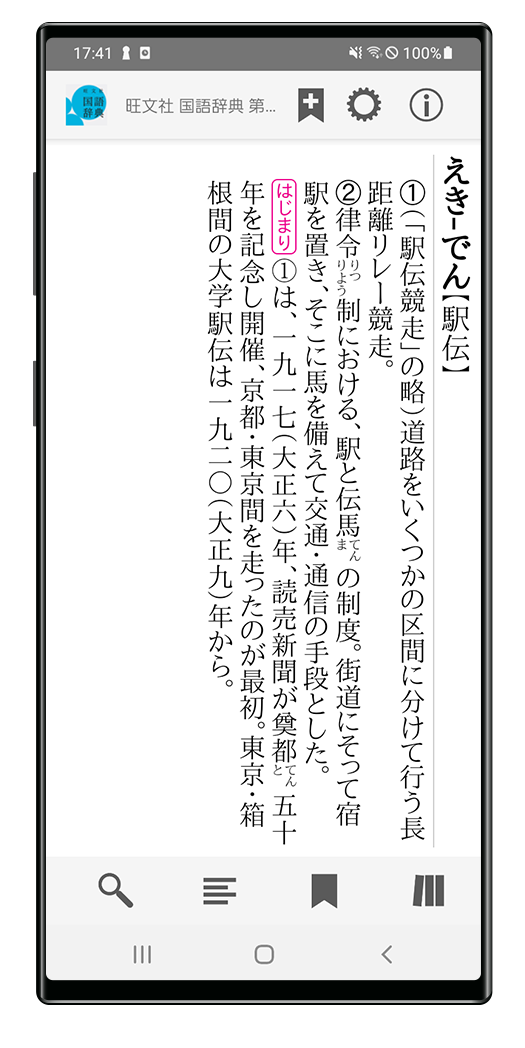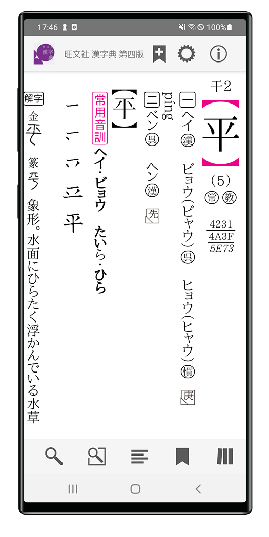 『旺文社 辞典アプリ』は、「しおりメモ」や文字サイズ・背景色の変更、画数・部首検索(※『旺文社 漢字典 第四版』および『旺文社 標準漢和辞典 第七版』のみ)などの機能を搭載している辞典ビューワアプリです。1つのコンテンツにつき、最大3台まで利用できるので、自宅学習用と学校用の両方の端末などにダウンロードすることができます。