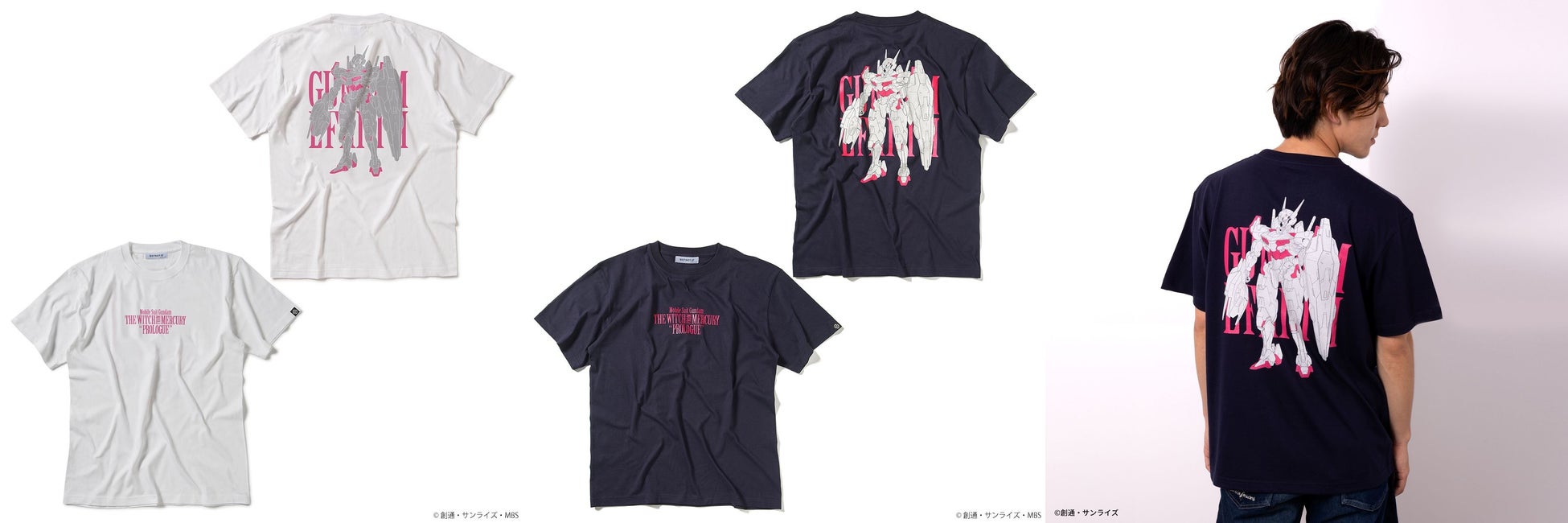 『機動戦士ガンダム 水星の魔女』アニメ本編の前日譚「PROLOGUE」のミニコレクション。作中に登場するMS(モビルスーツ)をモチーフにデザインした半袖Tシャツ3種を展開します。