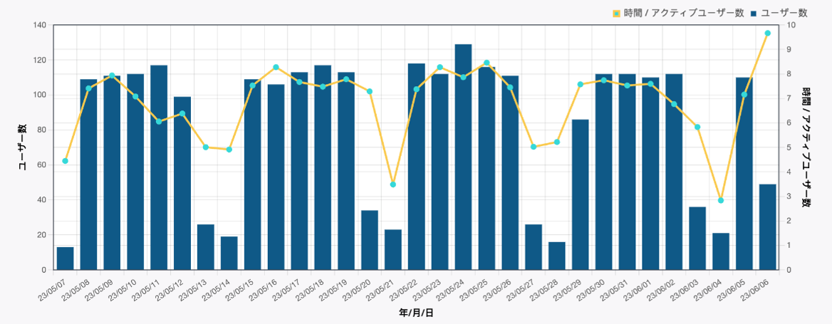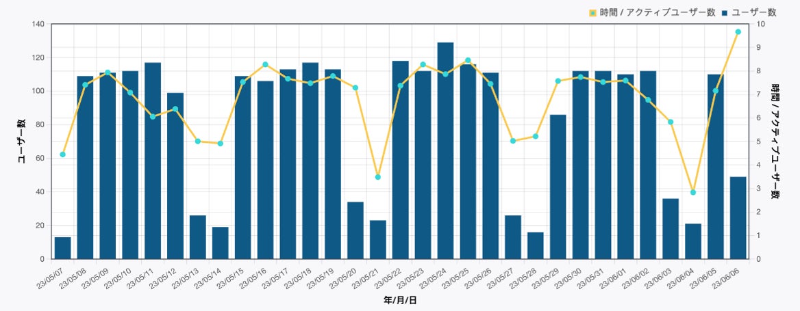 ▲平均滞在時間とアクティブユーザー数をグラフ化したもの。