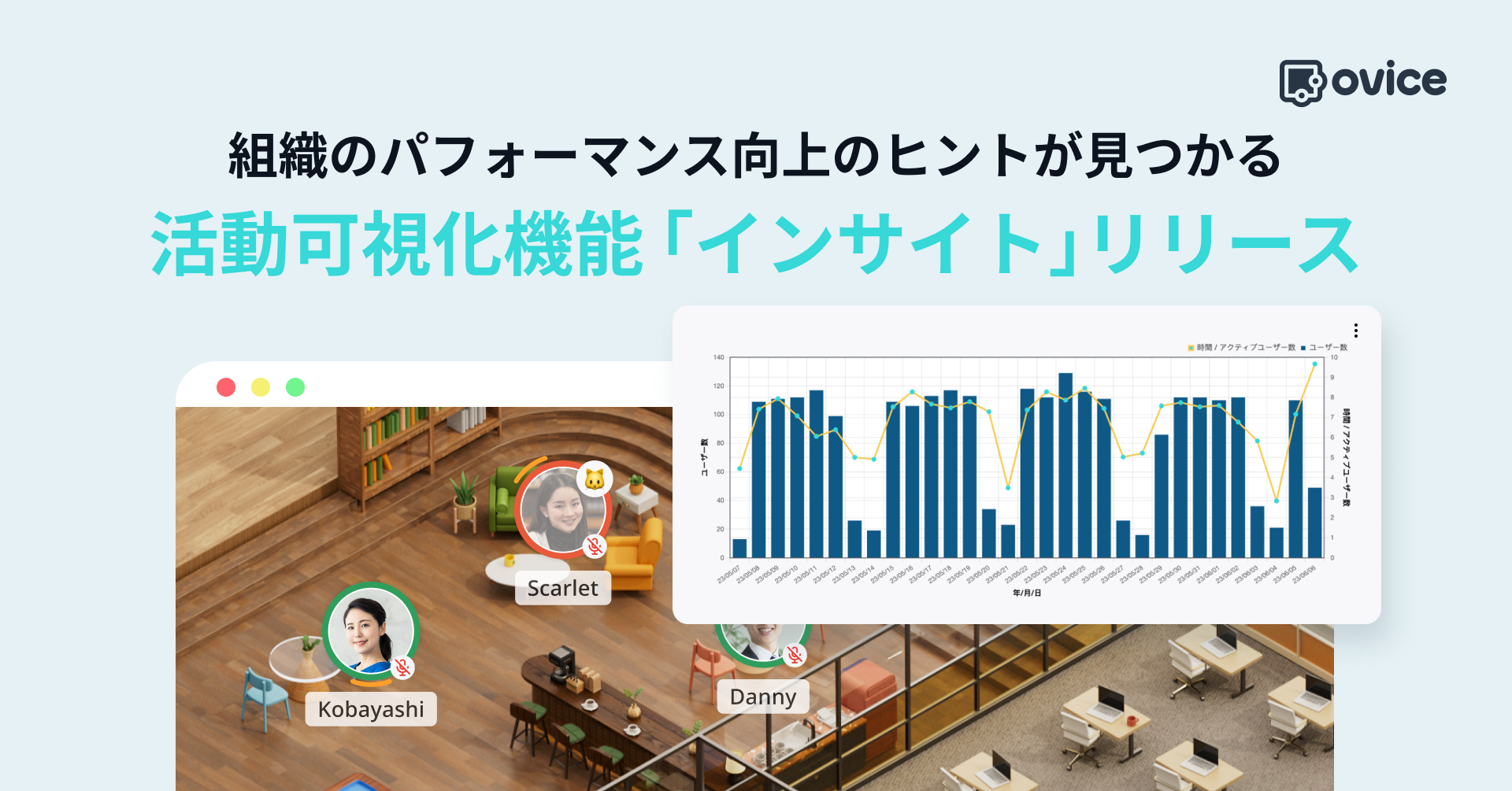 組織パフォーマンス向上のヒントが見つかる。バーチャルオフィス内の活動を可視化する機能「インサイト」をリリース