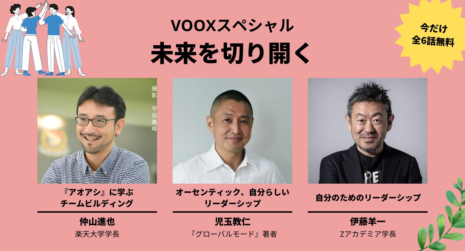 どんなに不確実な時代でも、他者と自分をリードし、成長し続けるチームになるヒントが詰まった3作品を、音声教養メディアVOOXにて、2023年1月27日(金)〜2月10日(金) 限定無料公開します。