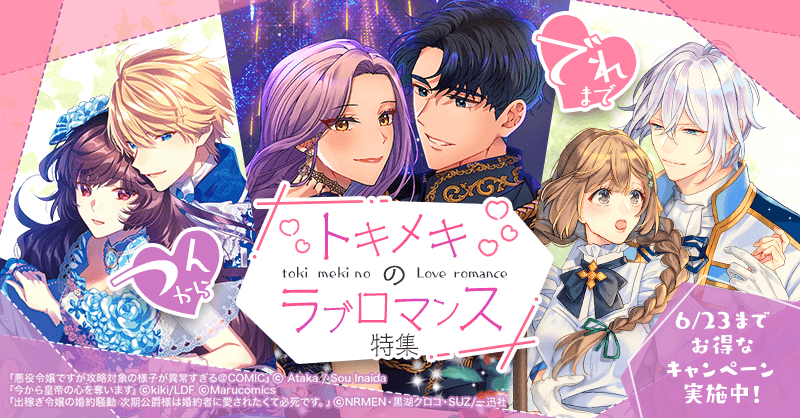 本キャンペーンでは、6月10日(金)から6月23日(木)までの期間、幅広い年齢層の女性に人気のLINEマンガオリジナルwebtoon作品『君の死を望んでいた』をお得に読むことができます。その他にも話題の『悪役令嬢ですが攻略対象の様子が異常すぎる@COMIC』(TOブックス)、『今から皇帝の心を奪います』(LINEマンガ)、『出稼ぎ令嬢の婚約騒動 次期公爵様は婚約者に愛されたくて必死です。』(一迅社)をお得に読むことができる他、40作品以上の人気作をお得に読むことができます。