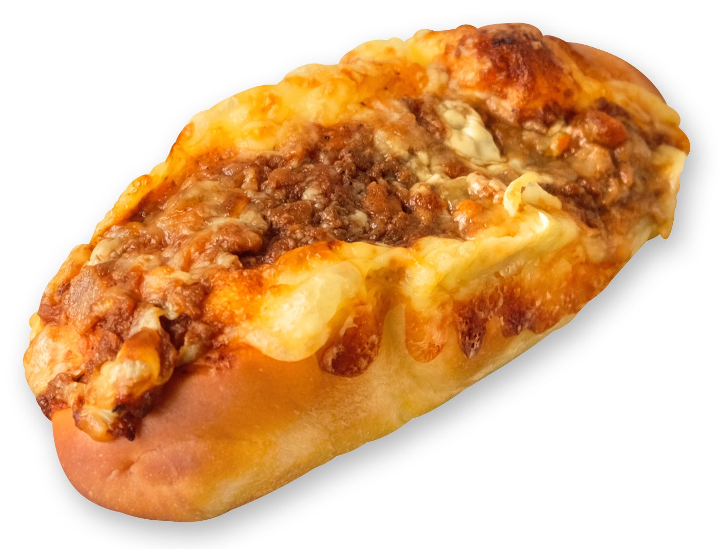 デミグラスソースで煮込んだボロネーゼをパンで包み込み、チーズソースをトッピングし焼き上げました。