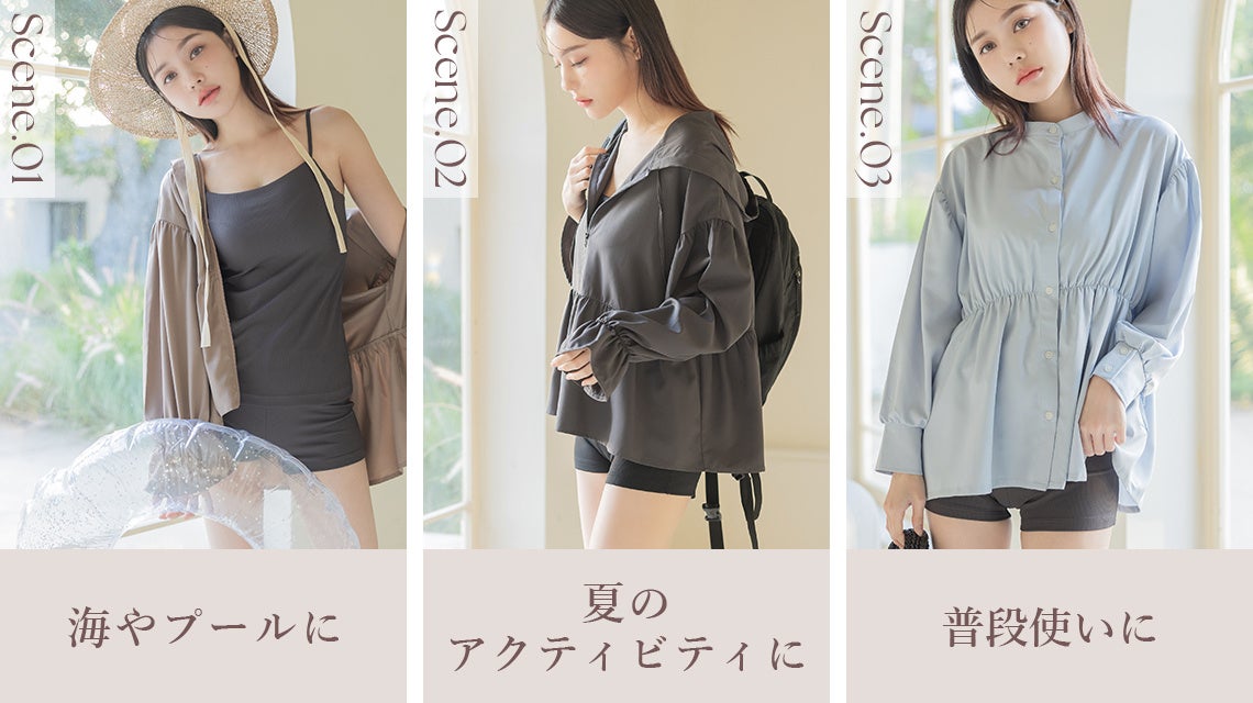 また、シアートップスやラッシュガードのインナーとしても活躍し、普段使いにも便利です。