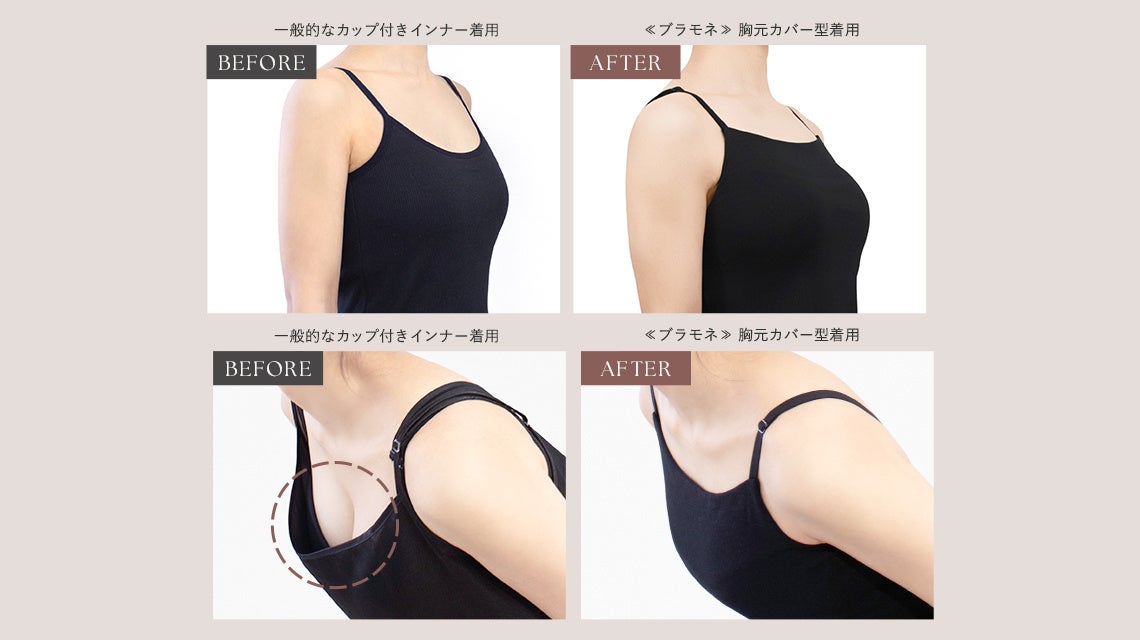 また、胸元カバータイプなので、前かがみになってもチラ見えせず谷間を隠せます。