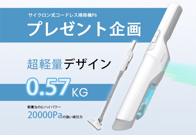 【新品体験】Proscenicの新品 P6コードレス掃除機プレゼント抽選会が開催中~