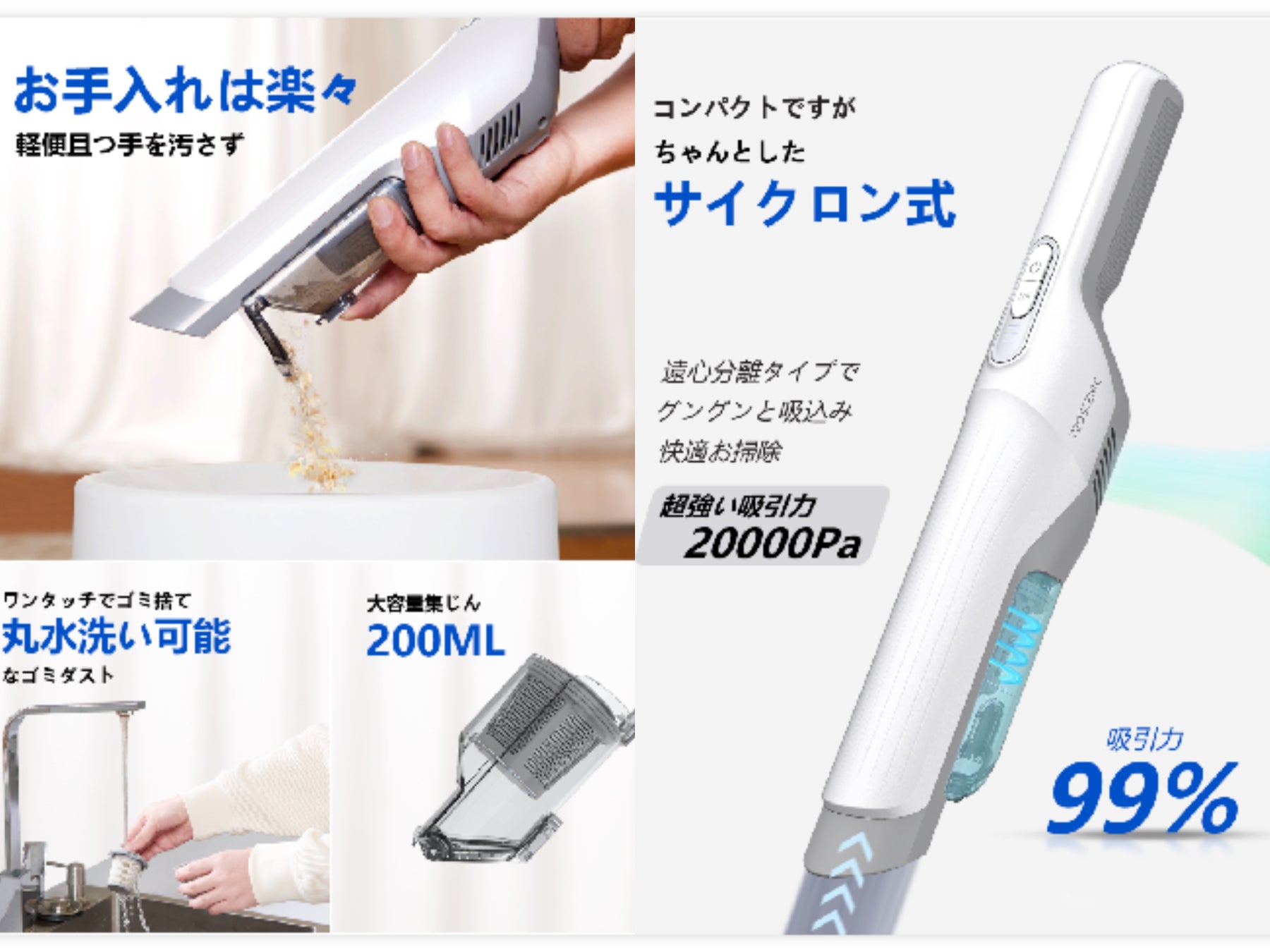 - お手入れは楽々:ワンタッチでゴミ捨て、手を汚さず。パーツはすべて取外し可能、ゴミダストは丸水洗い可能。