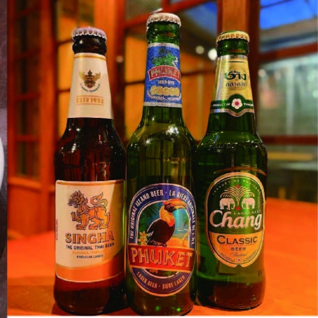 『(左から)ビア シンハー、ビア プーケット、ビア チャーン』