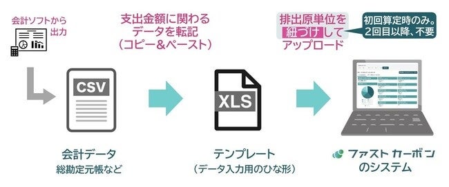 CO2排出量算定クラウドサービス「ファストカーボン」は、どの企業にも存在する会計帳簿のデータをもとに、国際規格に則ったCO2排出量を簡単な操作で可視化することを可能にしたもので、「一刻も早く脱炭素の入り口に立ち、可視化の先にある排出量削減に限られた経営資源を投入したい」という、最新の企業ニーズに応えられるサービスです。取組みが進むにつれ高額の費用が発生するケースがあるサービスでなく、追加費用が原則かからず、自己完結できるツールとしても注目されます。
