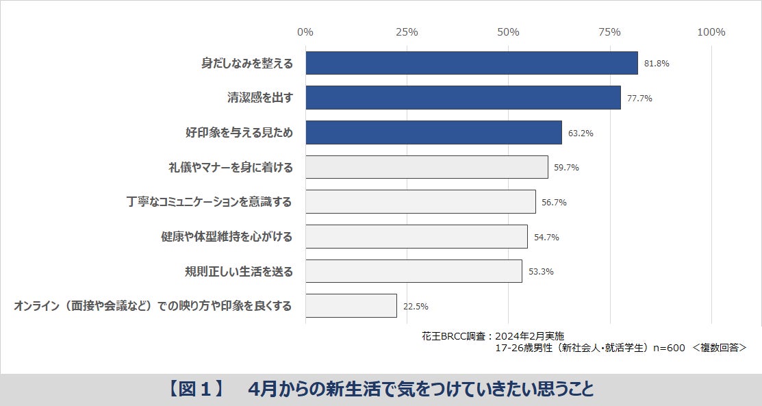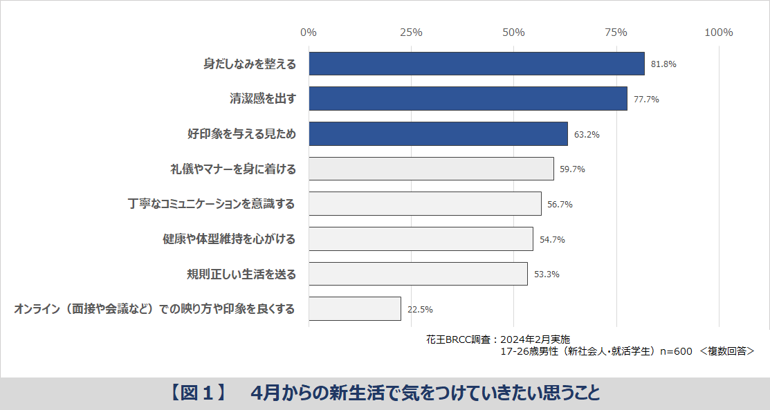 ※1花王BRCC調査:2024年2月WEB調査 美容に関心のある新社会人・就活生(17-26歳) 男性n=600 全ての結果は小数点第二位を四捨五入しています