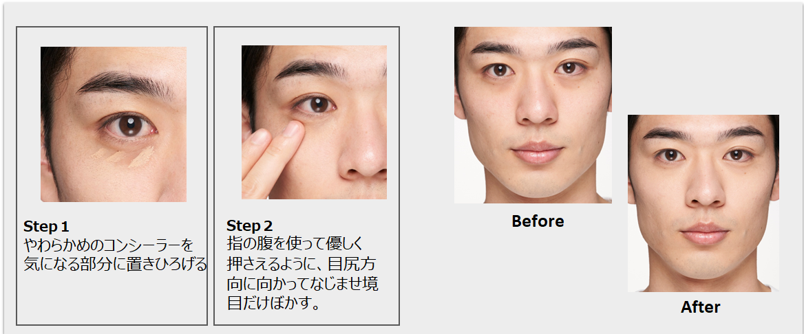 「服装や髪型だけでなく、ご自身の顔の肌もチェックしてみてください。まず、ご自身の肌の色ムラが気になる部分をカバーし、素肌との色の差が目立ってしまうときには、さらに顔全体に薄くファンデーションをつけるとより自然に仕上がります」 (花王BRCC メイクアップアーティスト 三国屋陽介)