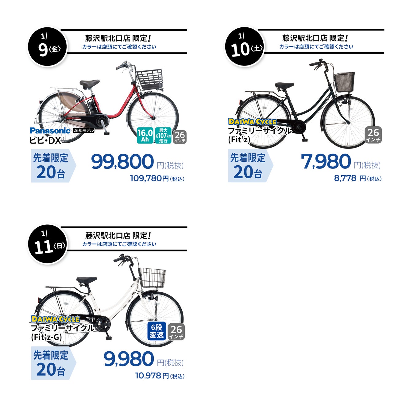 【台数限定で自転車が8,778円!】自転車専門店ダイワサイクル藤沢駅北口店が1/9(金)オープン!