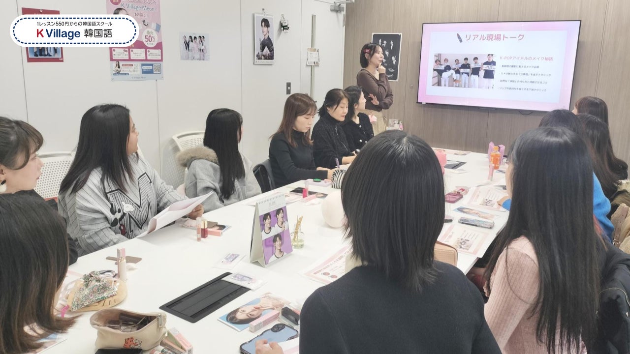 【韓国語ならK Village】日本最大級の韓国語教室が提供、韓国語×韓国美容をK-POPメイクのプロから学ぶ特別イベントが大盛況