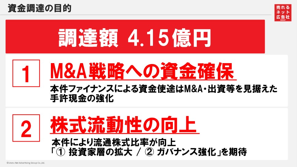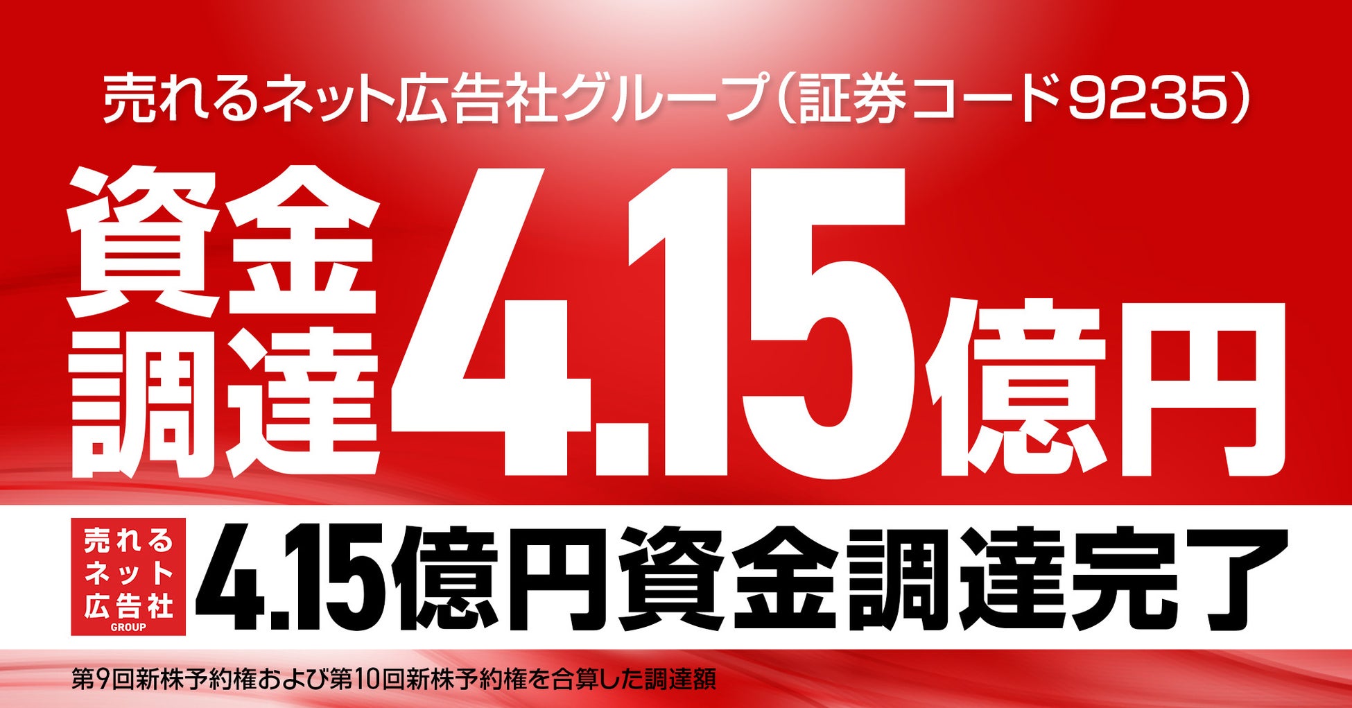 【“M&A”資金“4.15億円”を確保!】売れるネット広告社グループ、連続新株予約権で成長資金を一気に調達完了!~“3年で10社買収・売上100億円”への本気ロードを加速~