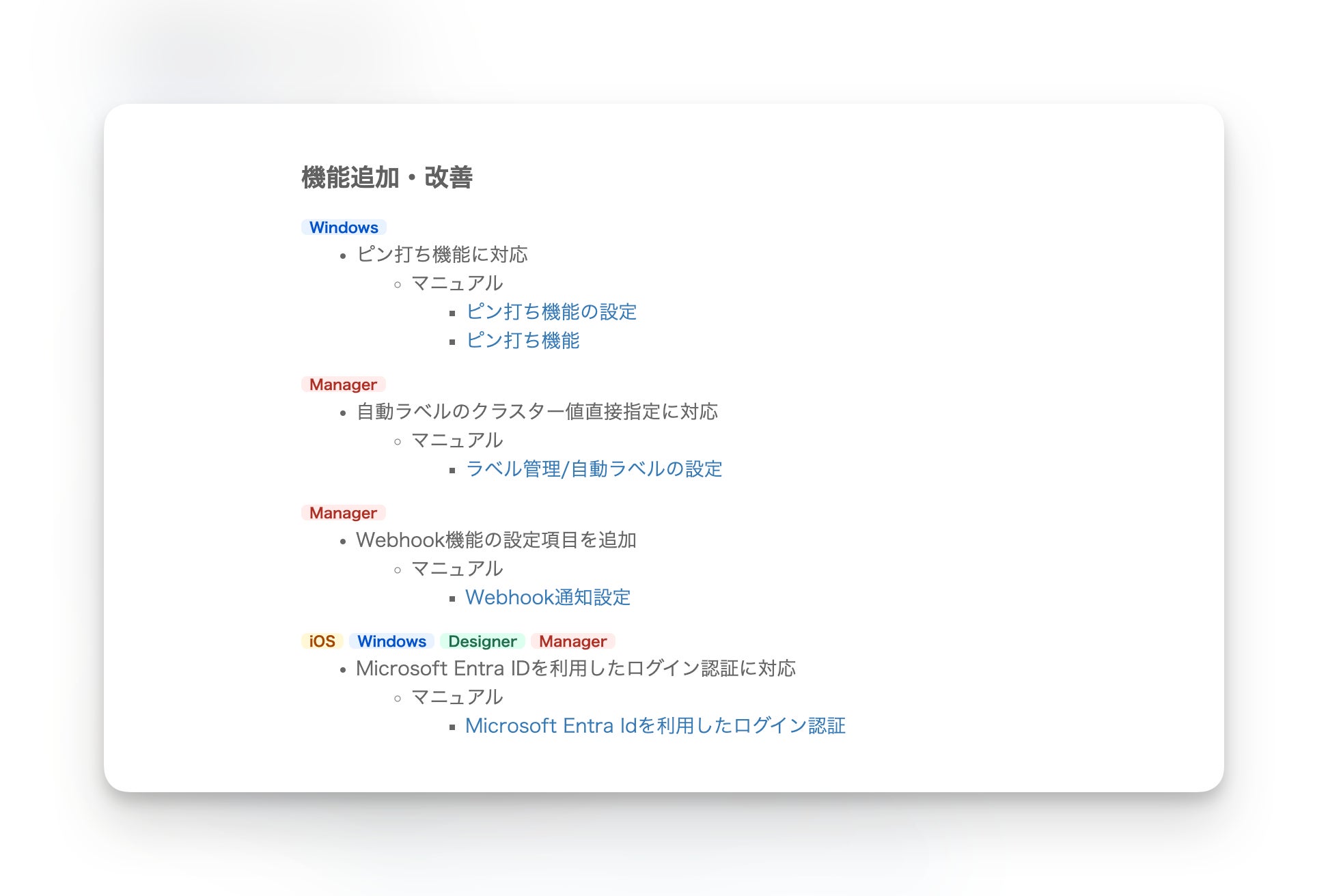 機能追加や改善内容が概略テキストのみで記述されていたため、追加・改善された機能がどのような機能であるかが非直感的な表現となっておりました。 -