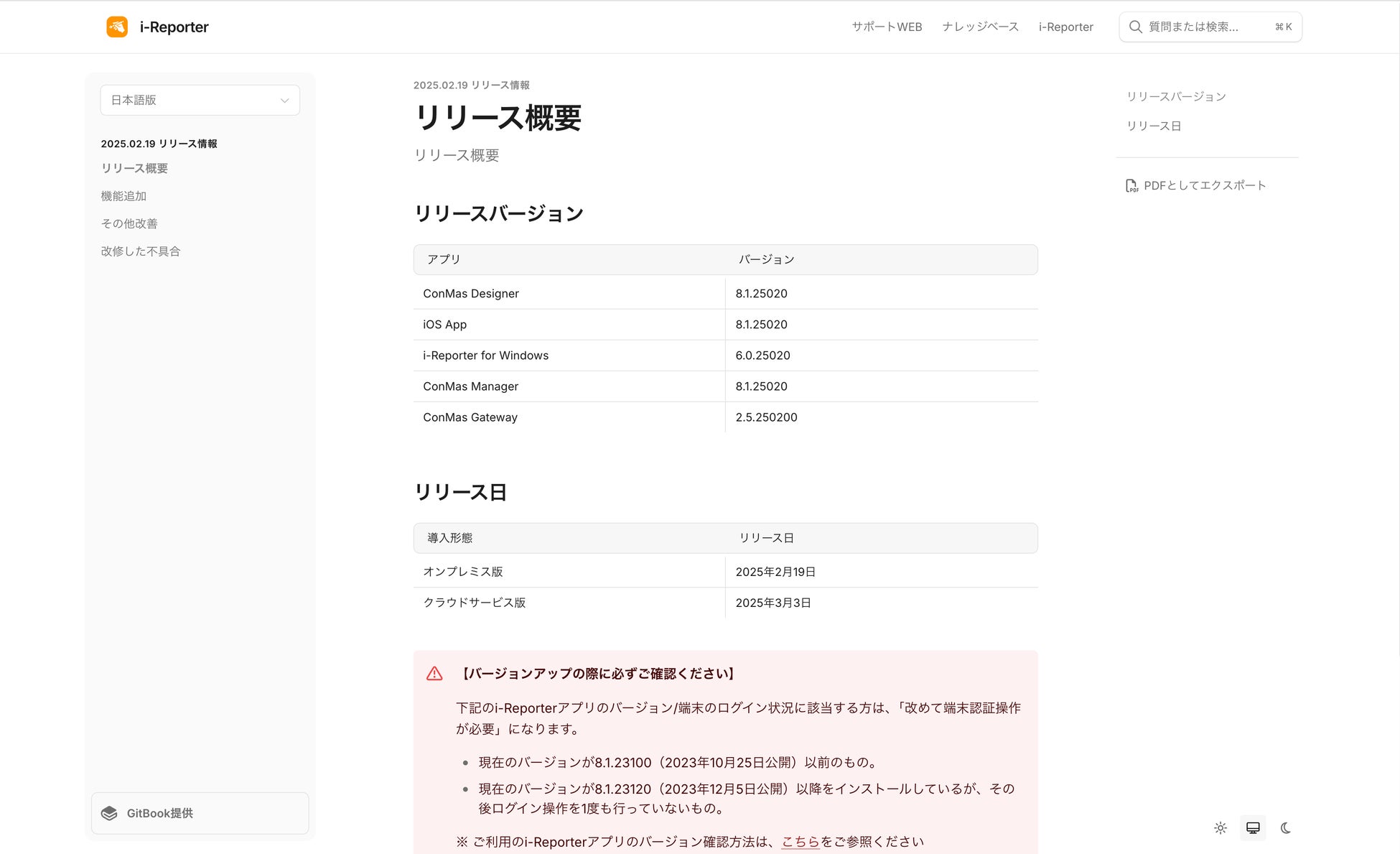 2025年2月19日(水)にリリースされるバージョンから順次各製品のリリースノートが新しくなります。